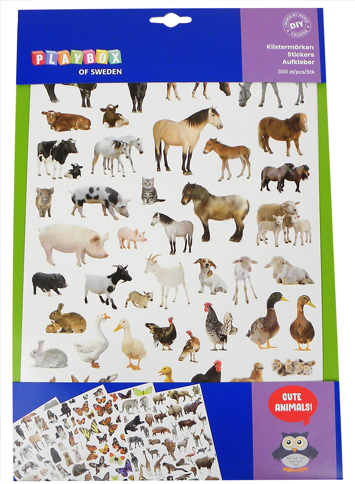 Je 1 Bogen mit Stickern von Tieren zum Thema Bauernhof, Wildtiere, Schmetterlinge, Vögel, Fische, Hunde und Katzen (22 x 32)