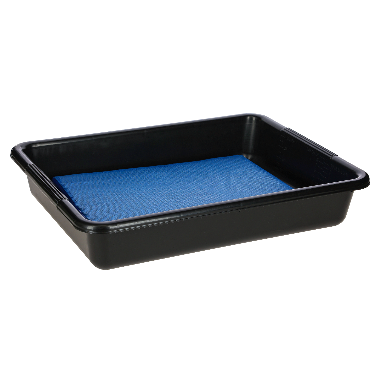 Robuste schwarze Kunststoff-Desinfektionwanne aus PE. Geeignet für alles handelsüblichen Desinfektionsmittel. Bodenprofil für optimale Trittsicherheit. Mit Maßanzeige (Liter). Auch zur Aufnahme von Desinfektions- oder Reinigungsmatten geeignet. Fassungsvermögen 40 Liter. 74 x 57 x 14,5 cm (LxBxH)