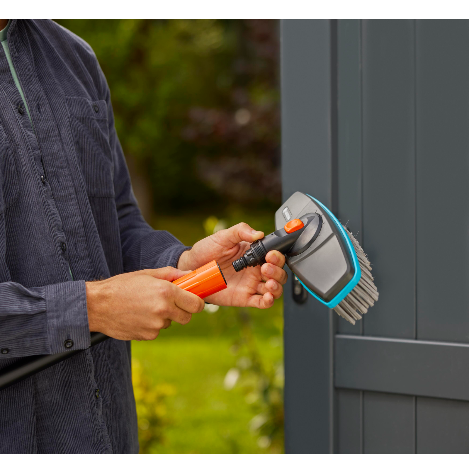 In 30°-Stufen rundum drehbar, für müheloses Arbeiten und ideale Anpassung an die jeweils zu reinigende Fläche. Ideal mit Gardena M Stiele verwendbar. Eine umlaufende Weichkunststoffleiste verhindert Kratzspuren.