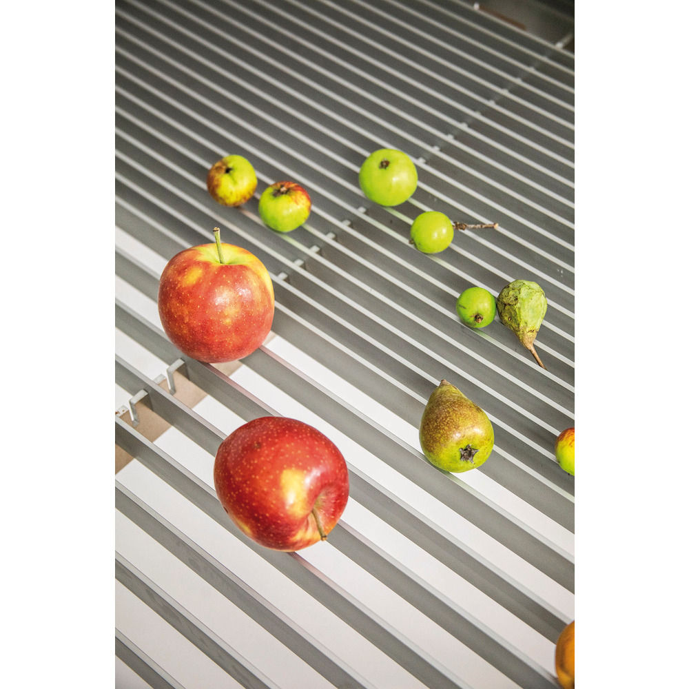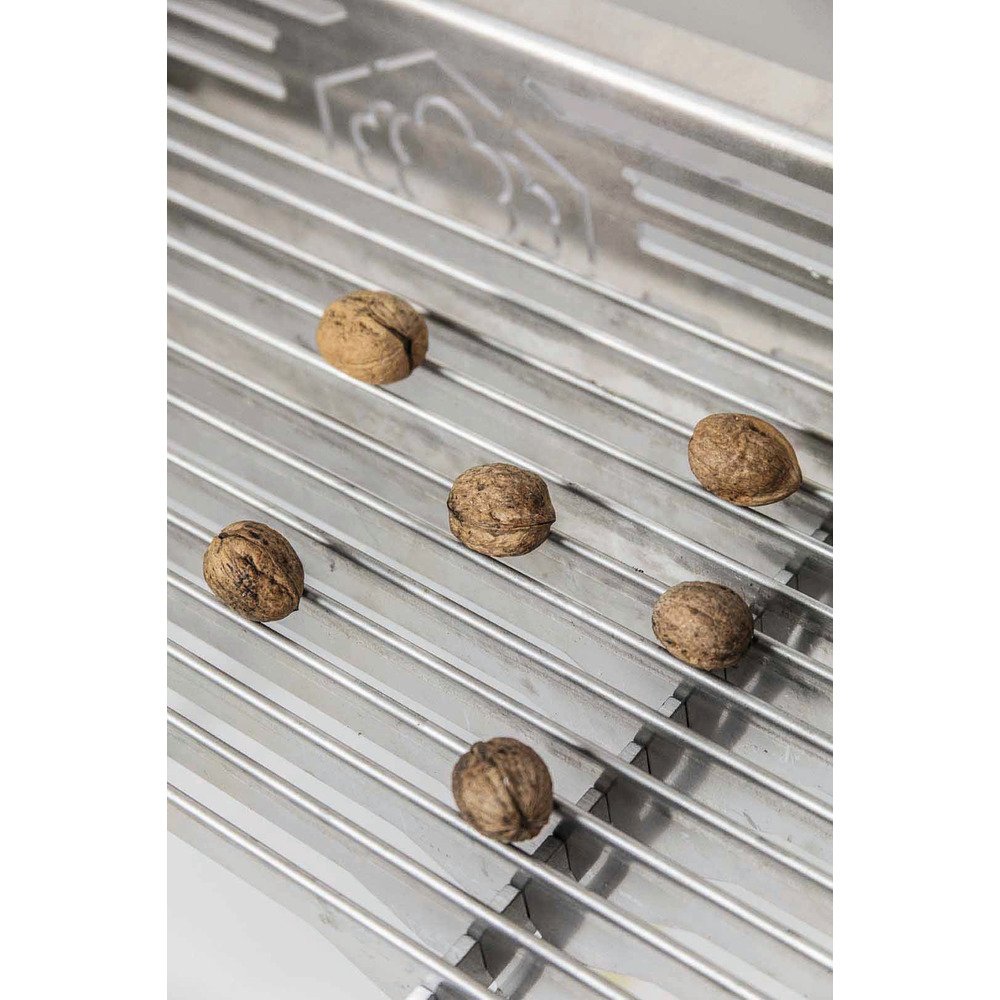 Erweiterungs-Set passend zum Sortiertisch Alu bestehend aus 18 Zusatzstreben zur Nachsortierung von Nüssen und kleinen Früchten (z.B. Mostbirnen). Spaltabstand variierbar: ab 12 mm (28 mm/44 mm). Aluminium eloxiert, lebensmittelecht.