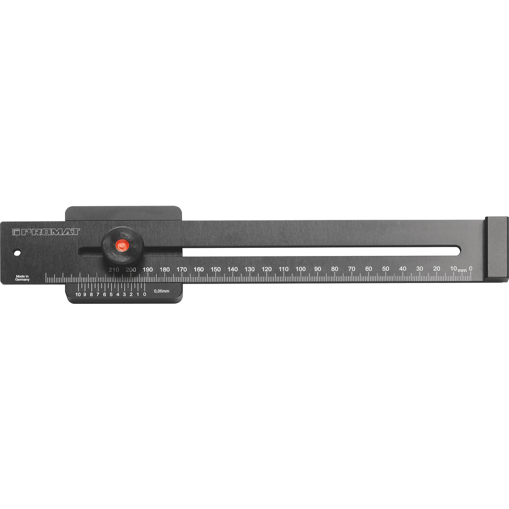 Mit flachem Schieber, oberflächengehärtetes Aluminium (HRc 62), schwarz eloxiert · gut ablesbare Laserbeschriftung · mit Nonius 0,05 mm