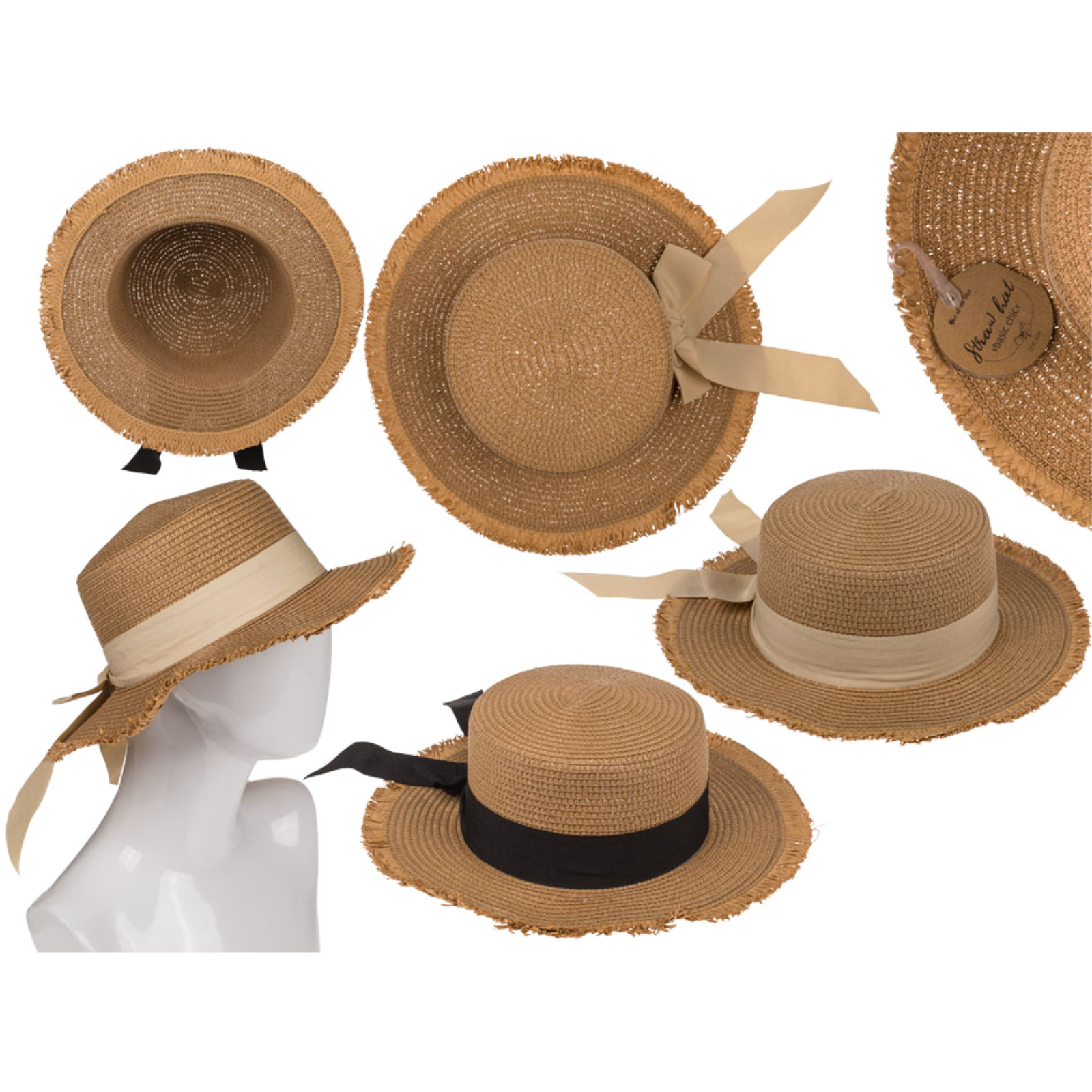 Damen-Strohhut mit Schleife – Stilvoller Sonnenschutz für warme TageDieser leichte Strohhut ist der perfekte Begleiter für im Hof, Garten, Spaziergang oder Urlaub.Die dekorative Schleife, in klassischem Schwarz oder zartem Creme verleiht dem Hut eine feminine Note.Durch die Einheitsgröße sitzt er bequem und luftig – ideal für sonnige Stunden im Freien. Das Material ist atmungsaktiv und angenehm zu tragen.Bitte beachten Sie: Die Farbe der Schleife ist nicht frei wählbar und wird nach Verfügbarkeit geliefert.Ein stilvoller Alltagshelfer für alle, die Sonne und Natur genießen!Material:98% Papier 2% PolyesterEinheitsgröße