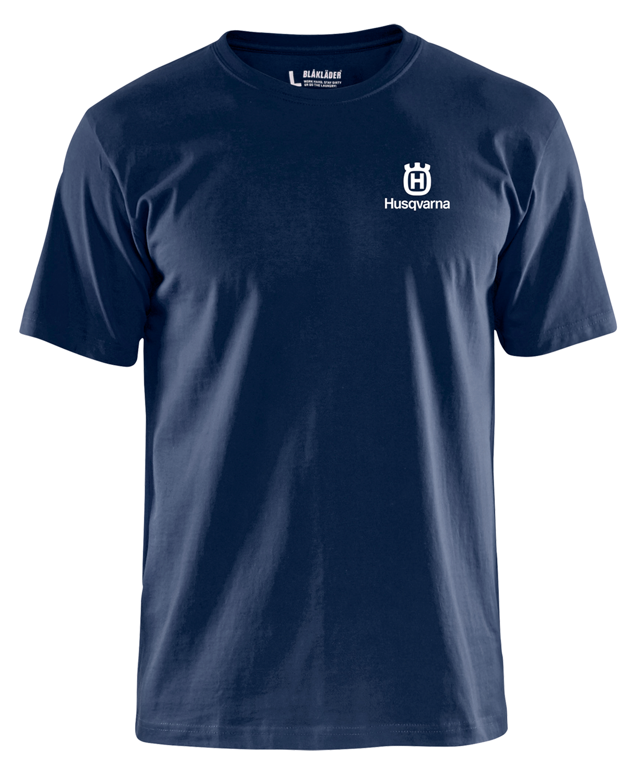 Modisches und hochwertiges Husqvarna T-Shirtmit geripptem, gestrickten Rundhalsausschnitt,verstärkte Naht an der Schulter und am Hals,mit Husqvarna Logo,Farbe: marineblau,Material: 100 % BaumwolleGrößen S bis XXXL.