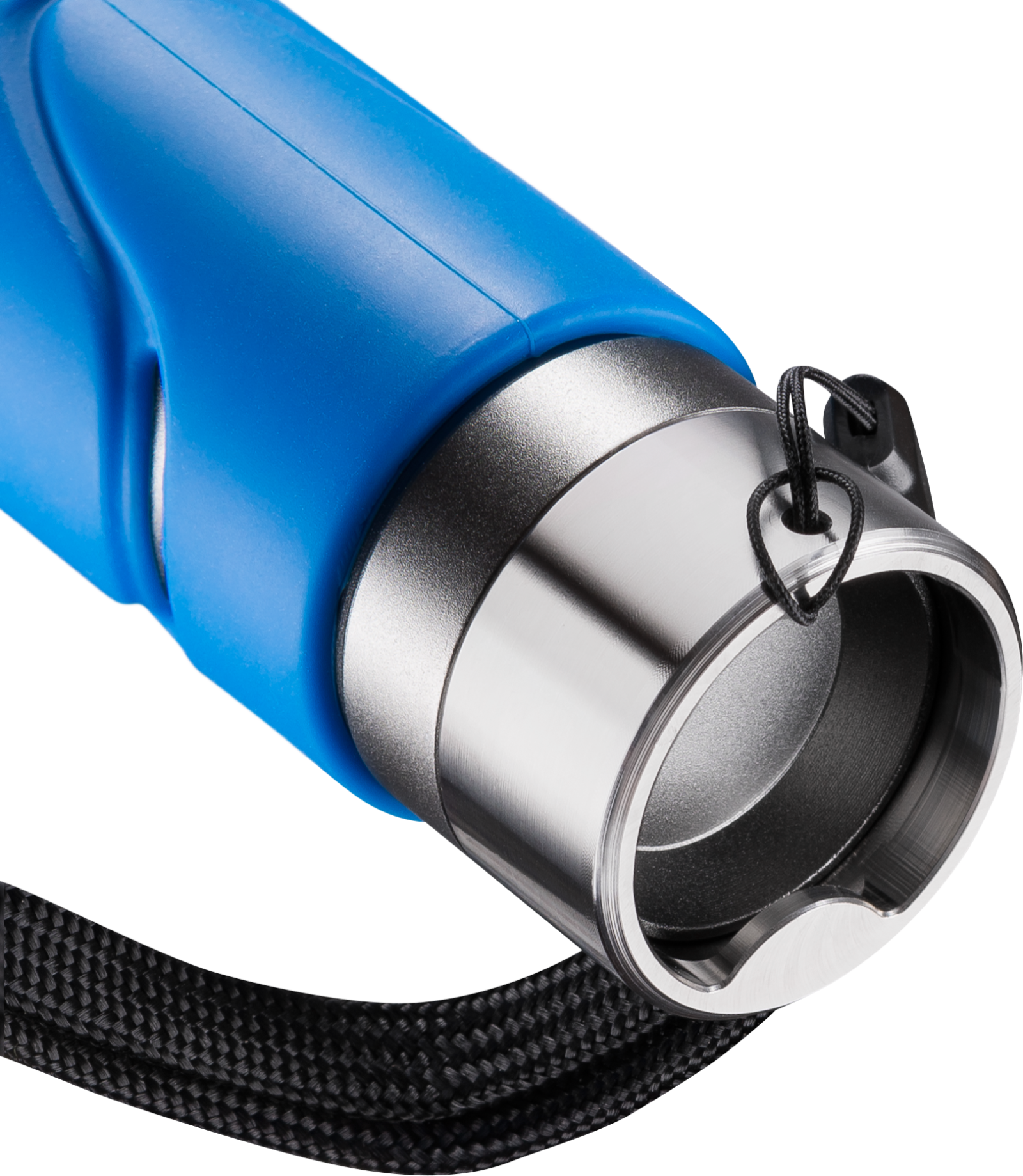 Mit gummiertem Griff für sicheren Halt, integrierter Handschlaufe und einem praktischen Flaschenöffner in der Endkappe