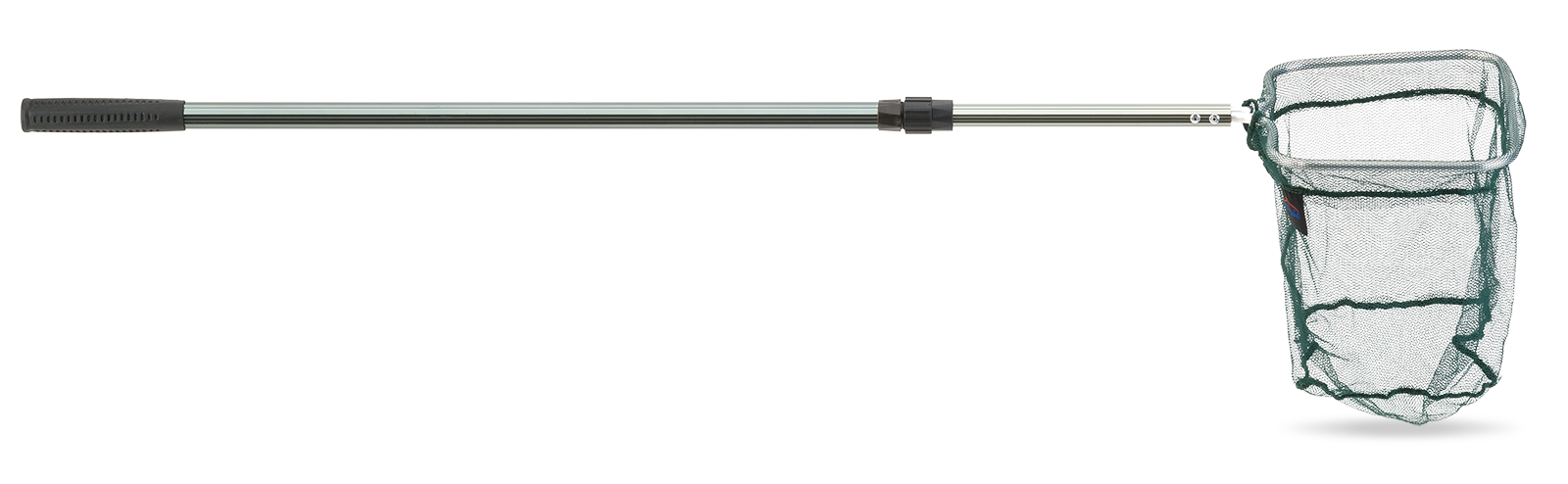 Kescherstab teleskopierbar, Länge 150 cm, grünes Netz mit einer Maschenweite von 2,00 mm, Einlass 25 x 20 cm.