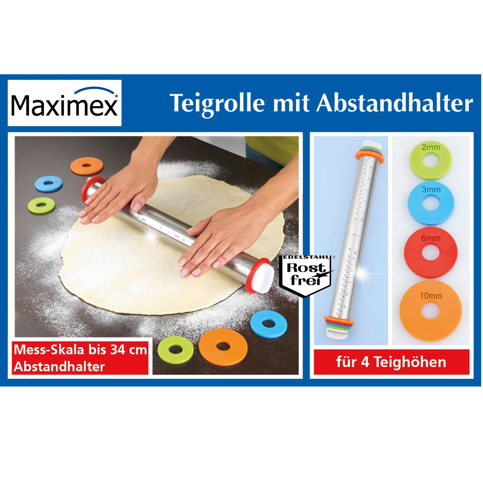 Produktinformationen " Teigrolle mit Abstandhalter aus Edelstahl"