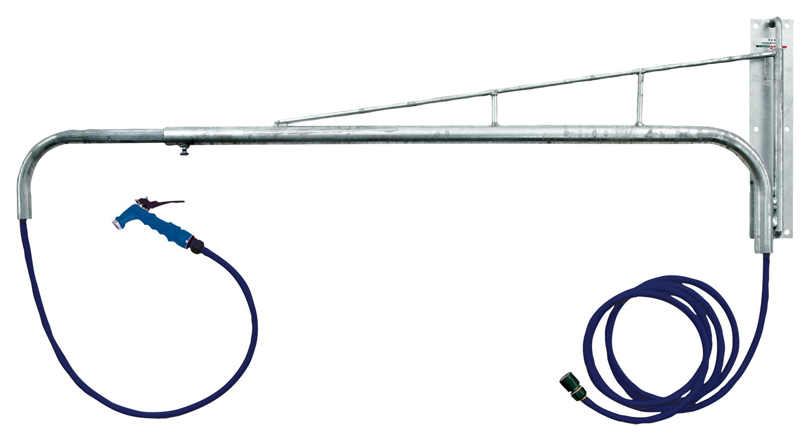 Die schwenkbare Erfrischung für deine Tiere! Verzinkter Schwenkarm ausziehbar von 120 bis 230 cm. Steck-Anschluss 1/2". 7 m Wasserschlauch. Einstellbare Spritzbrause.