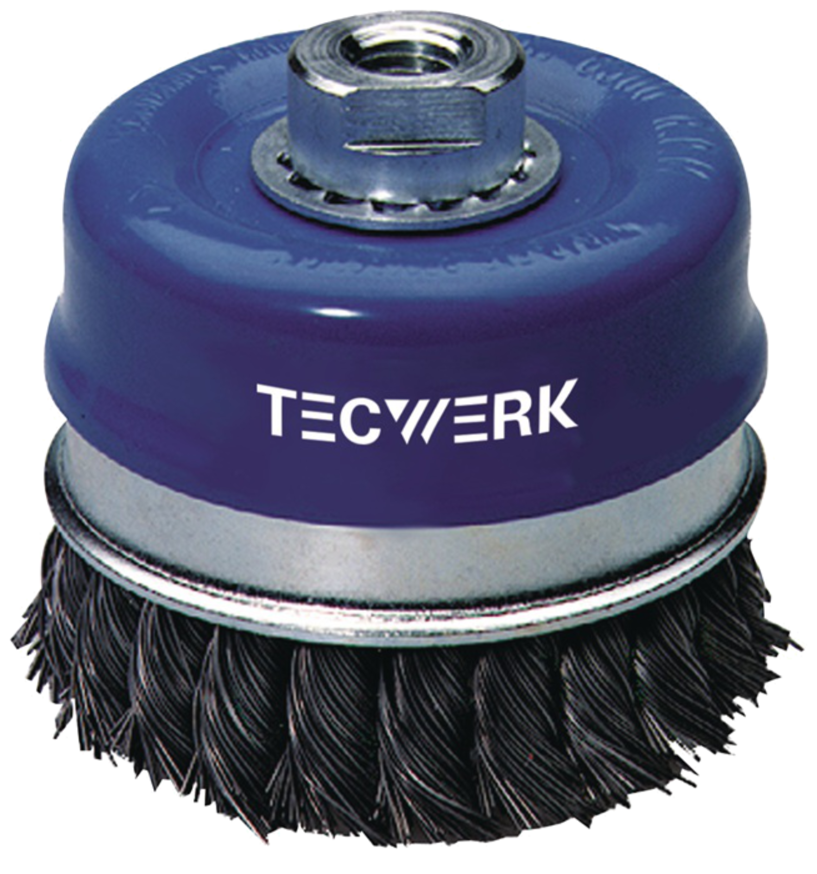 Aus gezopftem Draht, aggressives Werkzeug zum Einsatz bei schweren Reinigungsarbeiten. Mit Stützring & Winkelschleifer Aufnahme M14.