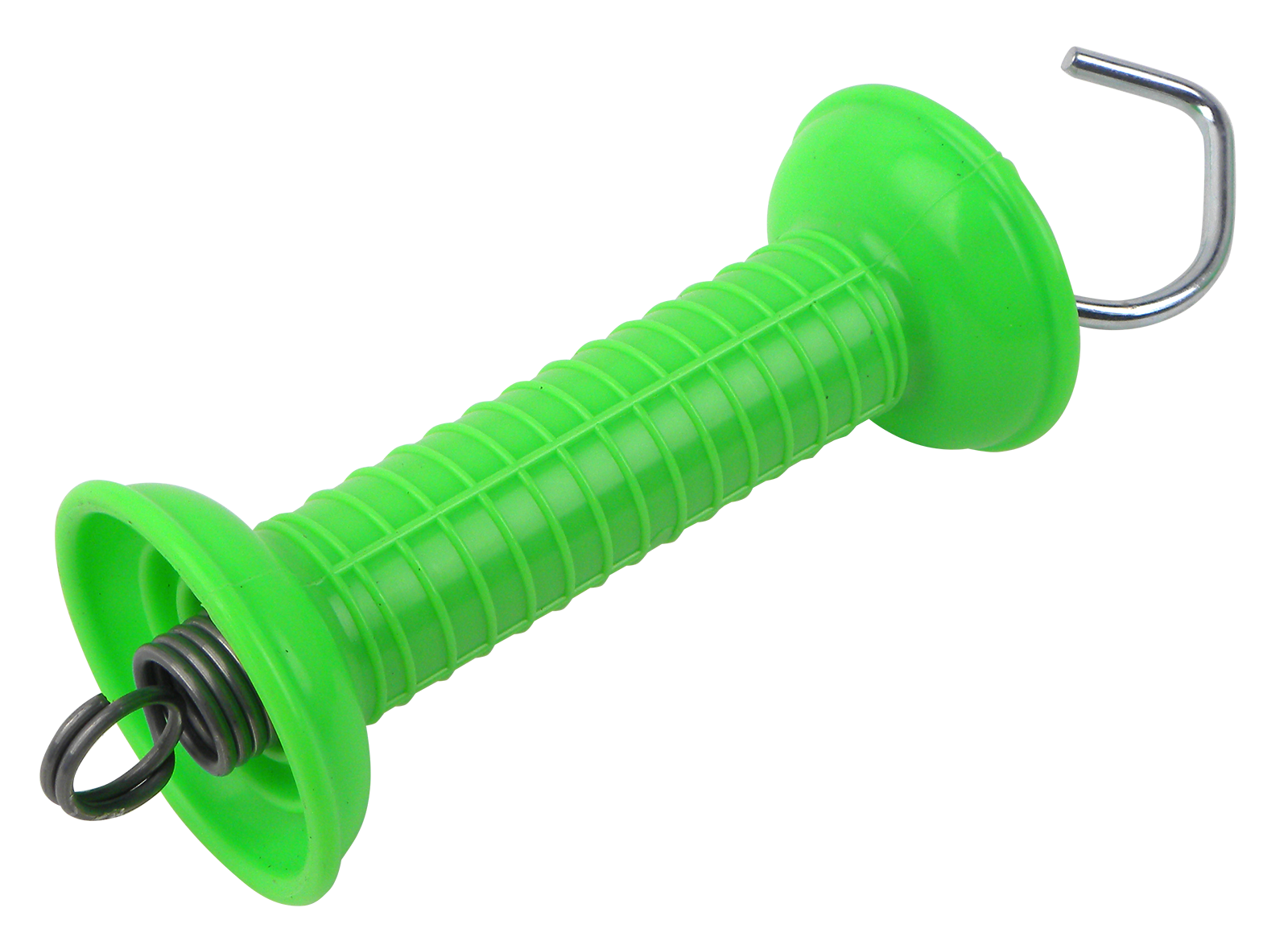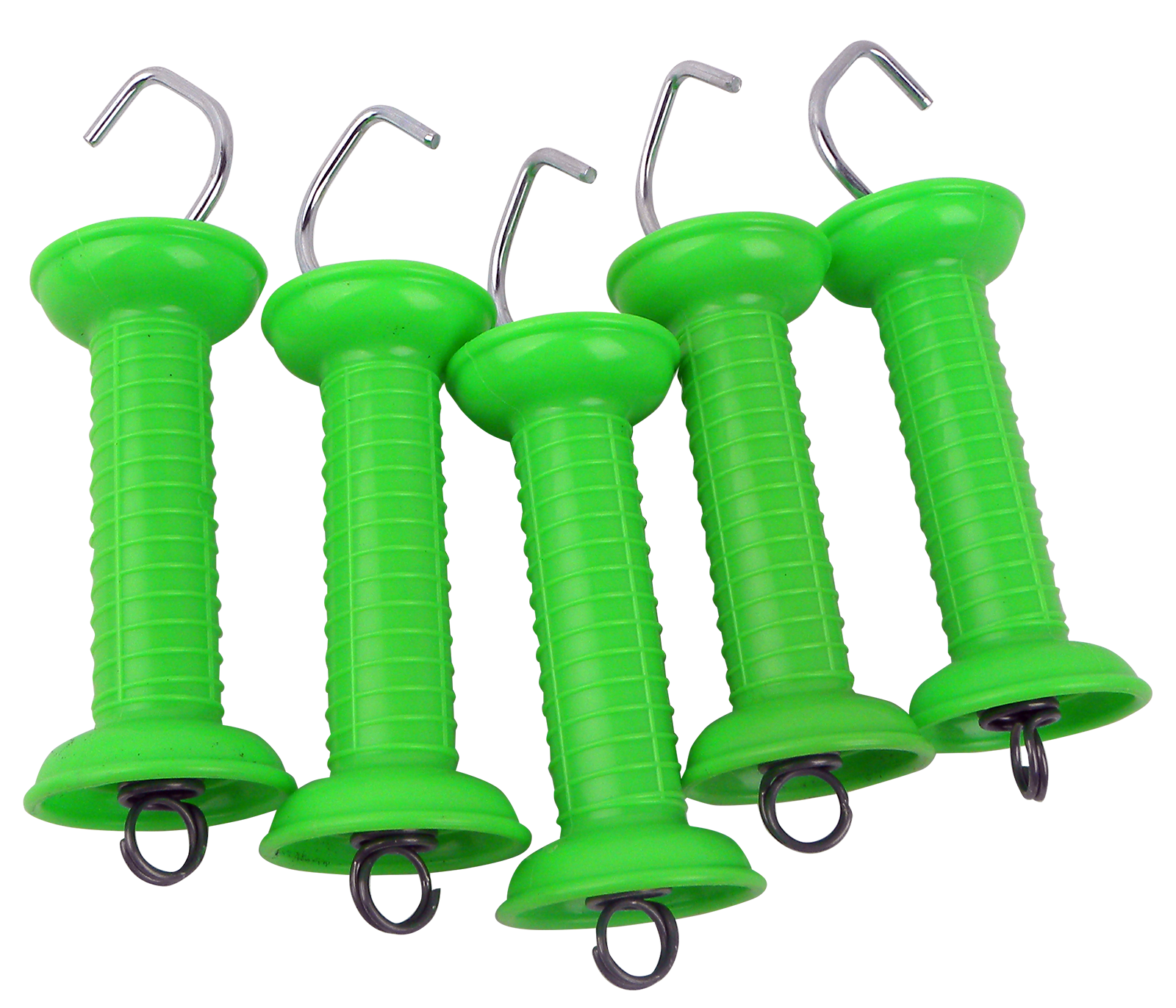 5 stabile neongrüne Torgriffe im Spar-Set. Torgriff mit Haken, Zugfeder und Öse.