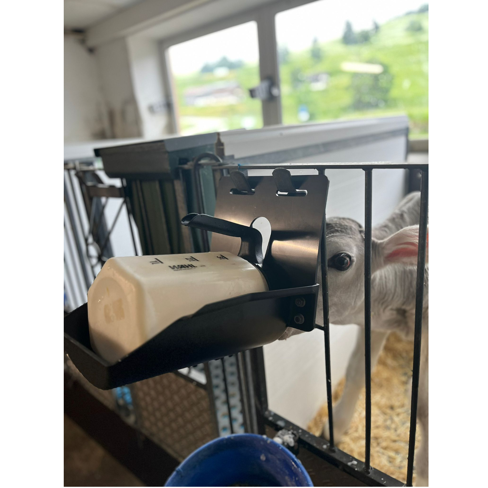Zur Fixierung der Tränkeflasche an der Eimerhalterung (z. B. an der Kälberbucht oder am Iglu).Aus schwarzem Kunststoff.Passend zur 1-Click-Tränkeflasche 3 Liter.