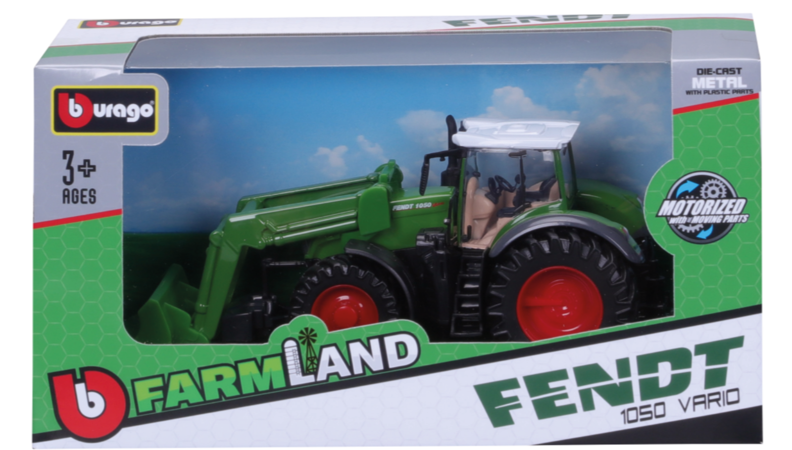 Der lizenzierte Traktor im Look des Fendt 1050 Vario begeistert kleine Traktor-Fans mit vielen realistischen Details. Das robuste Modell besteht aus stabilem Metall und widerstandsfähigem Kunststoff – ideal für stundenlanges Spielen im Kinderzimmer oder draußen im Garten.