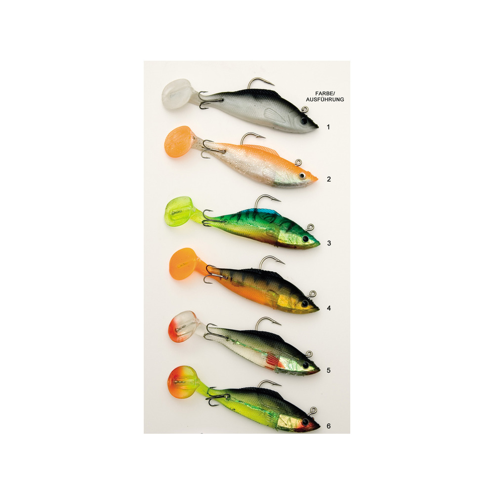 Komplett vorgefertigter Raubfischköder mit integriertem Bleikopf und superscharfem Drilling am Bauch. Der innen liegende Bleikopf ist mit einem zweiten, im Schwanz befestigten Drilling verbunden. Dadurch kaum noch Fehlbisse. Fisch hängt praktisch immer. Ein weiteres Highlight dieser Kunstköder sind die im Schwanz integrierten Geräuschkugeln. Für noch besseren Fangerfolg, 34 g, 2 Stk. Packung.