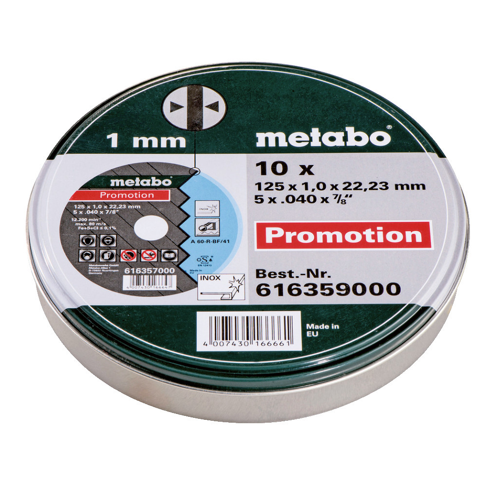 Universalscheiben Set mit 10 Stück Trennscheiben für Metall, Inox, bzw Edelstahlbearbeitung. Sehr gute Schnittleistung bei geringem Verschleiß. Scheibenstärke 1,0 mm. Lieferung in Blechdose.