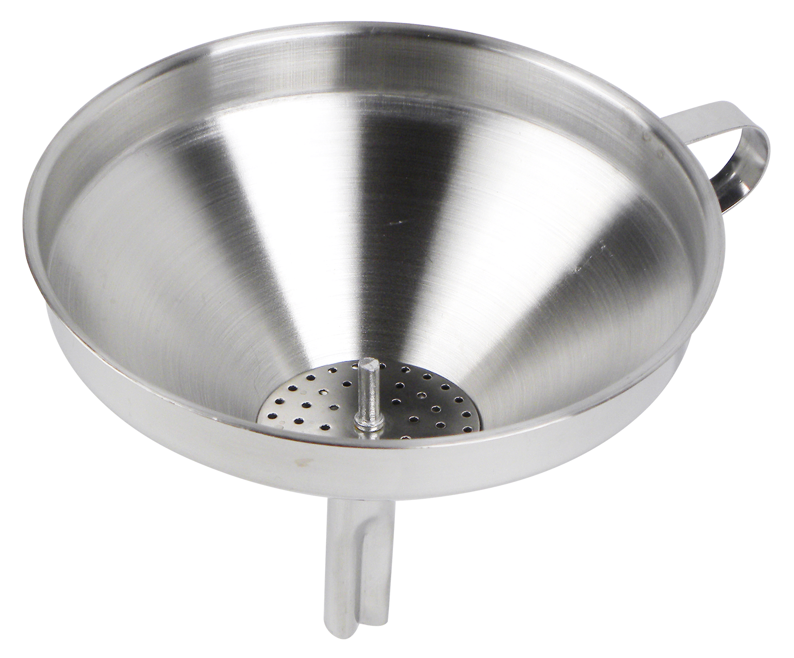 Trichter aus Edelstahl mit Sieb. Durchmesser: 12,5 cm