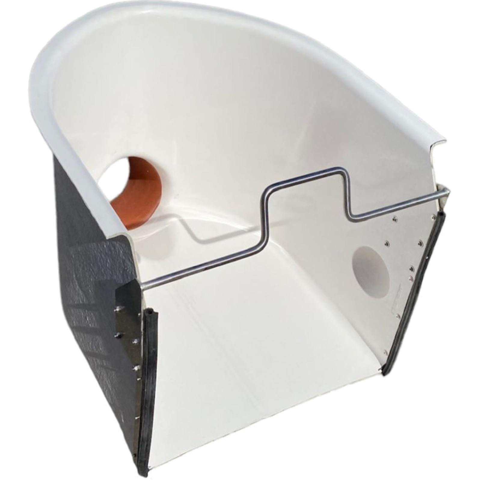 Produktbeschreibung – AblauftrichterDer Ablauftrichter ist die ideale Ergänzung zu unseren unisolierten Fischtransportbehältern mit Schleuse (32x29 cm und 30x40 cm) und rostfreien Edelstahlbeschlägen.Er wird einfach an der Edelstahlhalterung über der Schleuse eingehängt.Nach dem Öffnen der Schleuse gleiten die Fische sicher und schonend über das Ablaufrohr direkt ins Wasser.Für längere Distanzen lässt sich zusätzlich ein Verlängerungsrohr am Ablaufrohr anbringen.So können die Tiere problemlos über eine größere Strecke, z. B. bis zum Teich, umgesetzt werden.