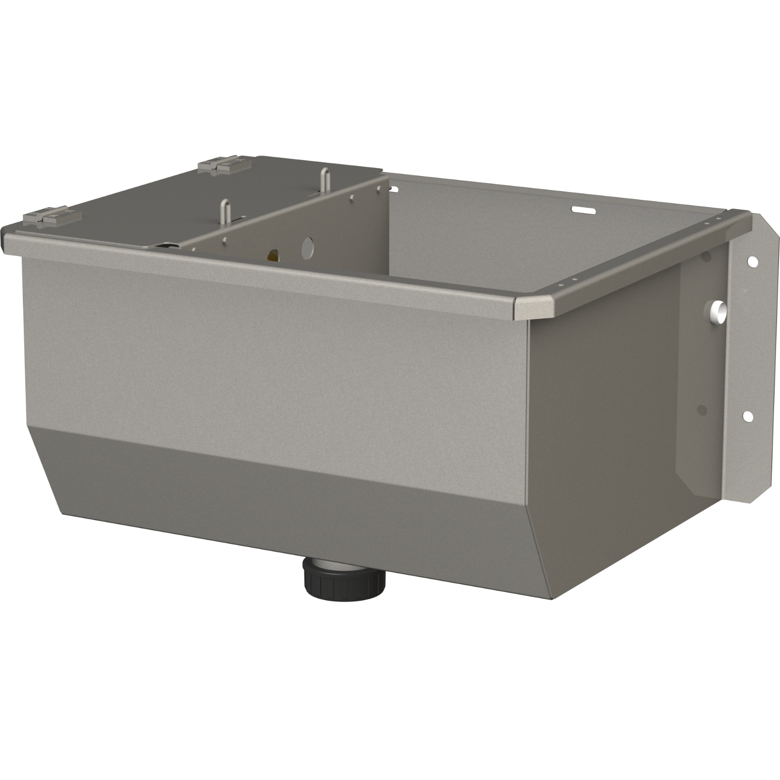 Der Trog besteht aus rostfreiem Edelstahl, inkl. Schwimmerventil mit 1/2 Zoll-Anschluss.