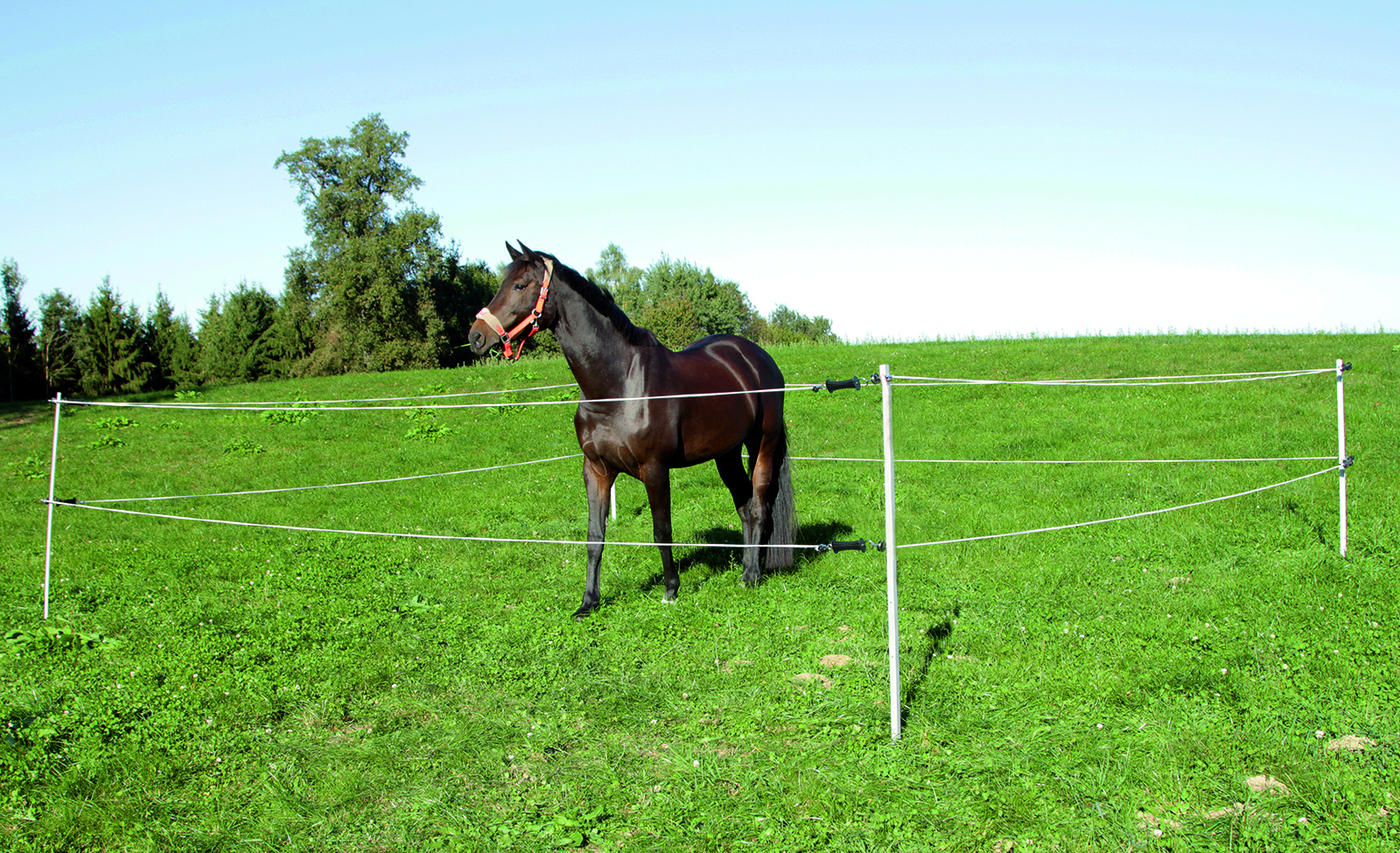 Preiswertes 9 V Batteriegerät für Einsteiger! Perfekt für den mobilen Einsatz, für kleine Pferde- oder Rinderkoppeln ohne Bewuchs am Zaun oder Paddocks. Auch für Haus- und Kleintiere gut geeignet. Mehrfarbige LED-Balkenanzeige (5 LED´s) zur Überwachung der Zaunspannung. Separate LED zur Batteriewarnung. Großer Ein-/Ausschalter. Optionaler Betrieb auch mit aufladbarem 12 V AGM-Akku möglich (Best.Nr. 122482).Was Sie noch benötigen: 9 V Batterie und Erdstab.Lieferumfang: Erd- und Zaunanschlusskabel, Aufstell-Erdpfahl, Warnschild.Achtung: Dieses Gerät ist für Weidenetze (Schafnetze) nicht geeignet!