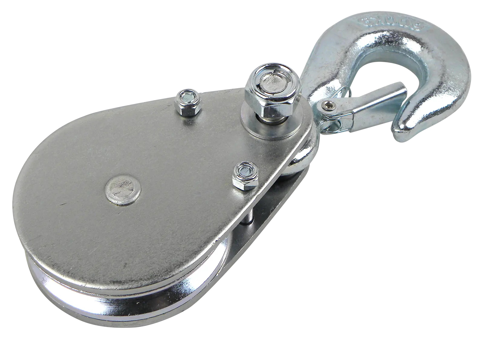 Umlenkrolle mit Haken für elektrische Seilzüge. Mit Haken und Rolle.