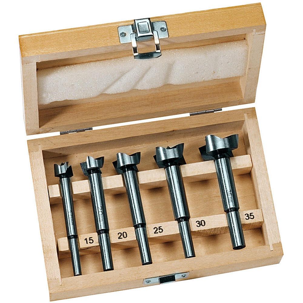 Universalbohrer mit Zentrierspitze aus Chrom-Vanadium Stahl in einer praktischen Holzkassette. Sowohl für den Einsatz bei Hart- Weich- und Furnierholz geeignet.Inhalt:Ø15mm, Schaft Ø6mmØ20mm, Schaft Ø8mmØ25mm, Schaft Ø8mmØ30mm, Schaft Ø8mmØ35mm, Schaft Ø8mm