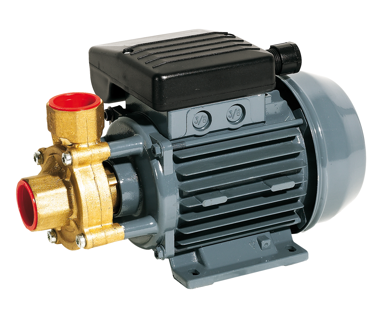 Universalpumpe mit 0,37 KW / 0,5 PS 230 Volt Motor. Pumpe aus Messing dadurch bedingt (keine Zulassung) für Lebensmittel geeignet. Durch die Verwendung von Viton-Dichtungen ist diese Pumpe für bis zu 80° C warme Medien geeignet. Die Pumpe eignet sich also hervorragend für das Durchspülen von Anlagen oder Leitungen mit Heißwasser, wie z. b. zur Reinigung von Melkstandleitungen usw. Förderleistung max. 35 L/min, Förderhöhe bis zu 30 m = 3,0 bar, Saughöhe max. 3,0 m. Anschlüsse. Saug- und druckseitig jeweils 1 Zoll IG. Eigengewicht 5 kg. Maße: 250 x 180 x 160 m.