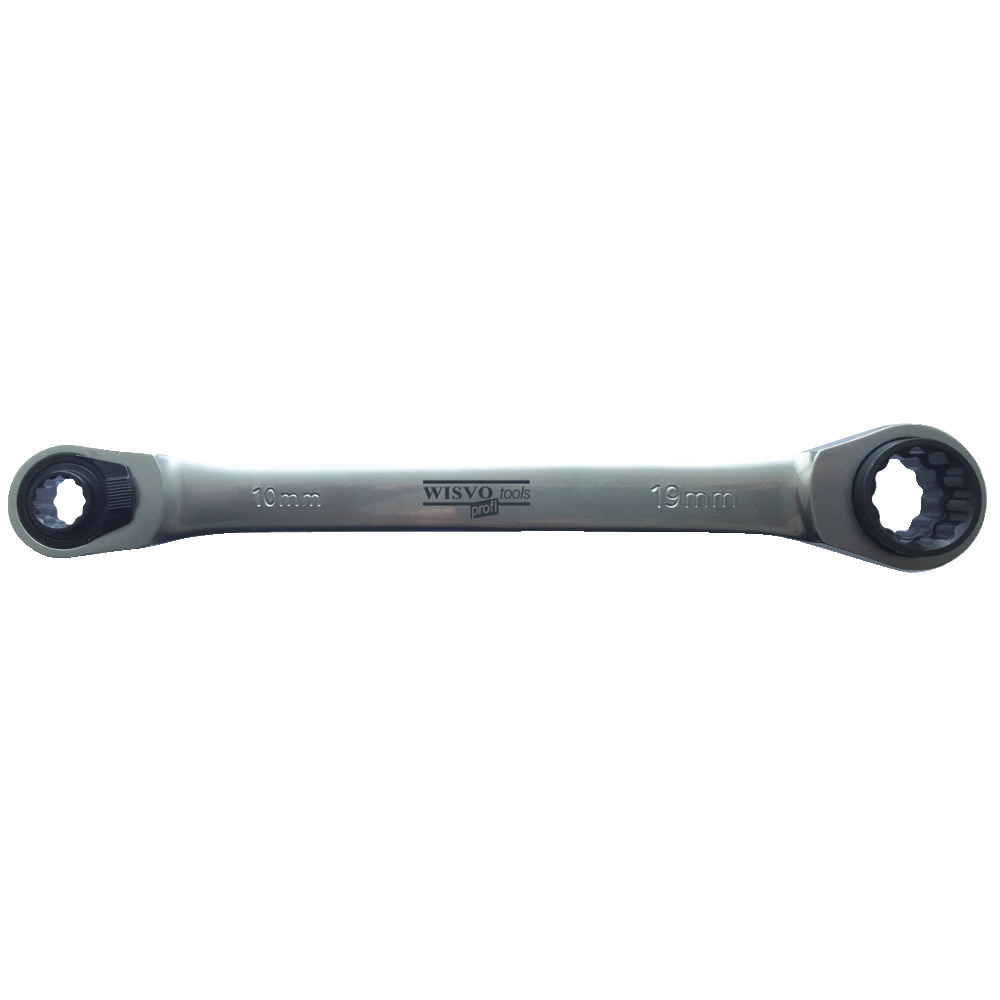 Praktischer Ring-Ratschenschlüssel mit 4 Größen in einem Schlüssel. Mit einem Werkzeug lösen und befestigen Sie den überwiegenden Teil Ihrer Schrauben.