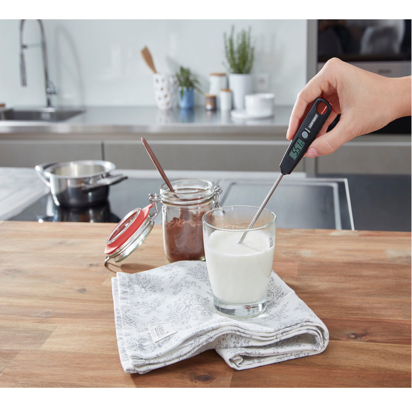 Es misst auch die Temperatur von Milch, Teewasser, Wein und anderen Flüssigkeiten.