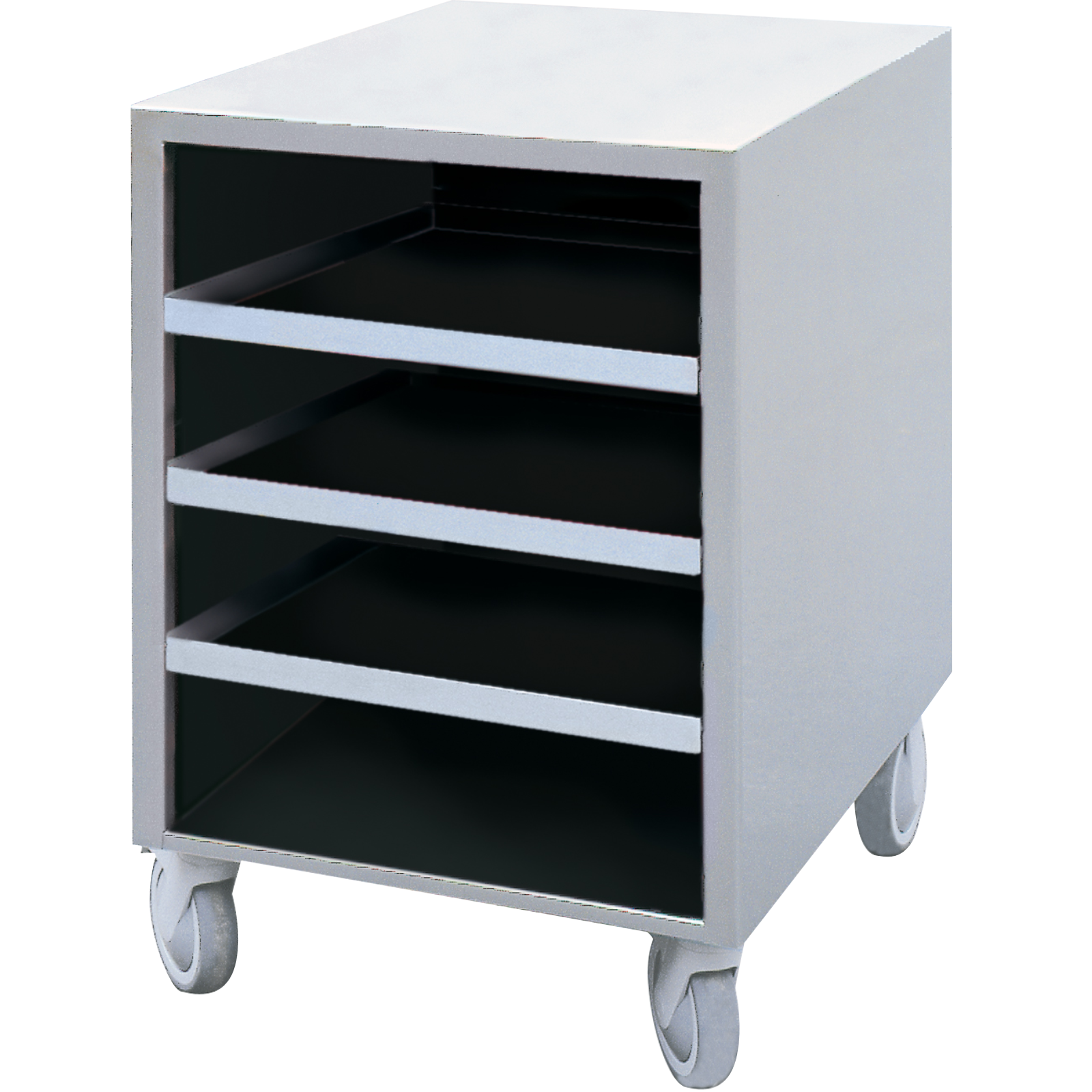 4 Ablagefächern4 LenkrollenEdelstahlAbmaß: 475x 620x 760 mmGewicht: 26 kg