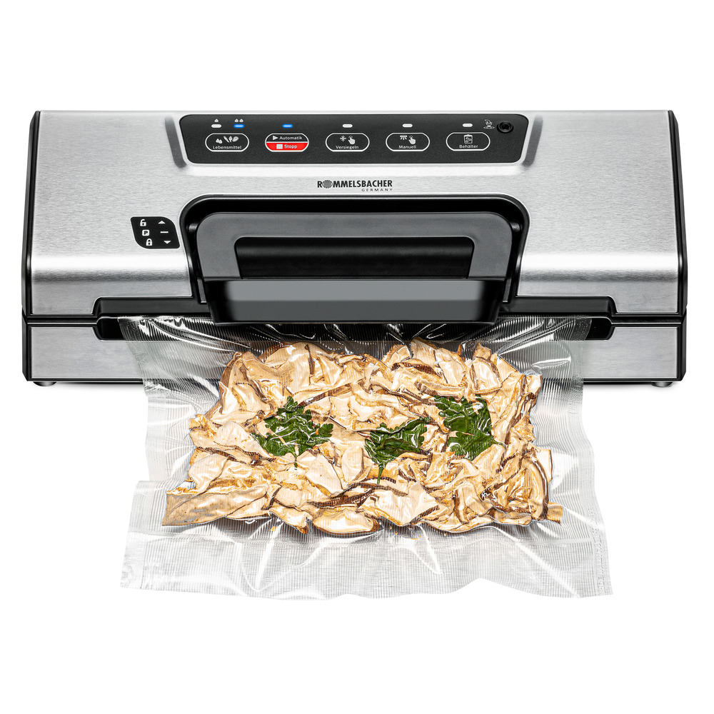 Lebensmittel ganz einfach lange frisch halten mit dem Vakuumiergerät VAC 385. Ein praktischer Handgriff ermöglicht die Einhandbedienung ohne Kraftaufwand. Die leistungsstarke Pumpe sorgt für einen Unterdruck von bis zu -0,8 bar, bevor die Beutel vollautomatisch versiegelt werden.