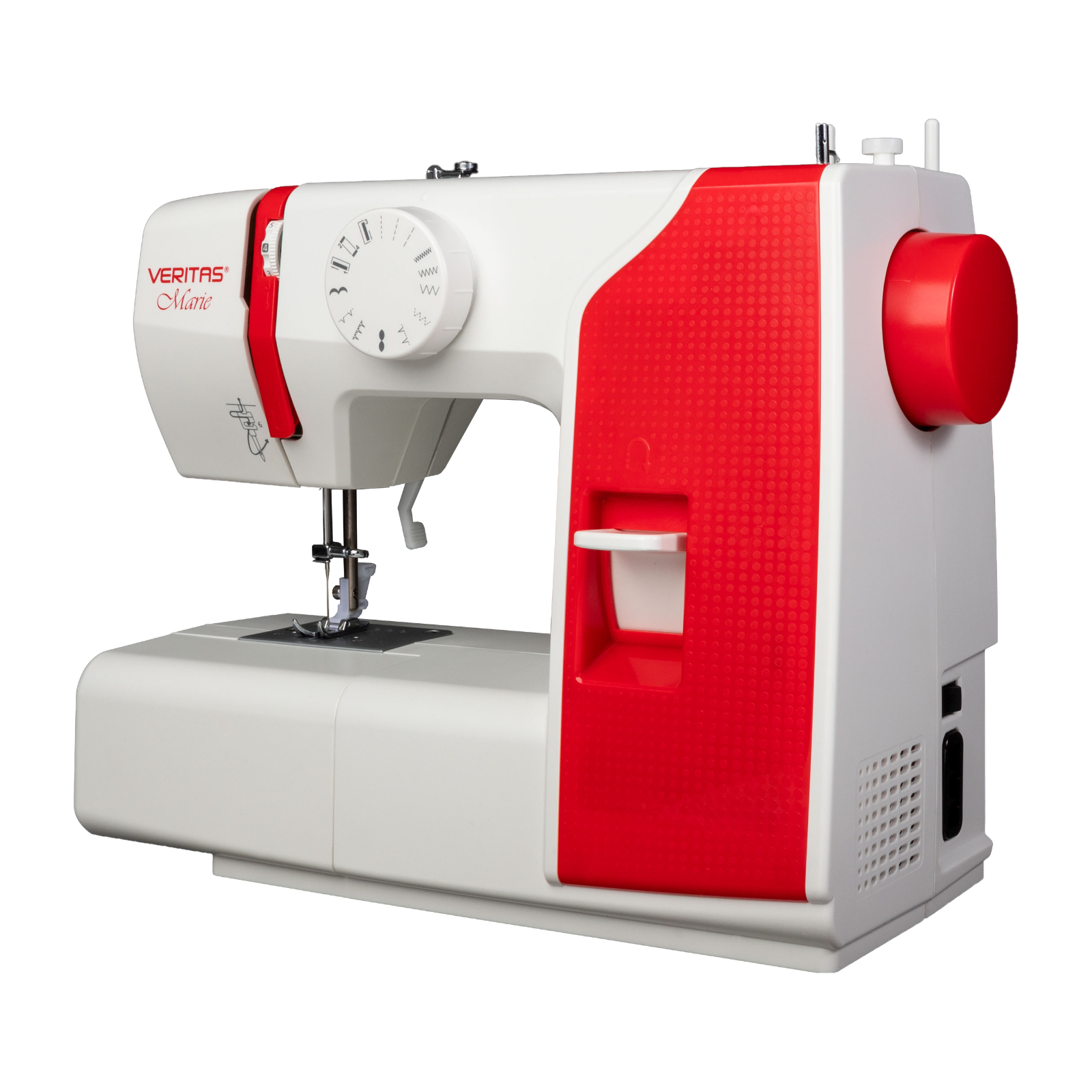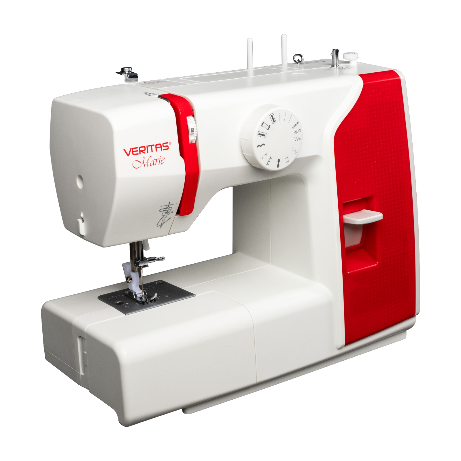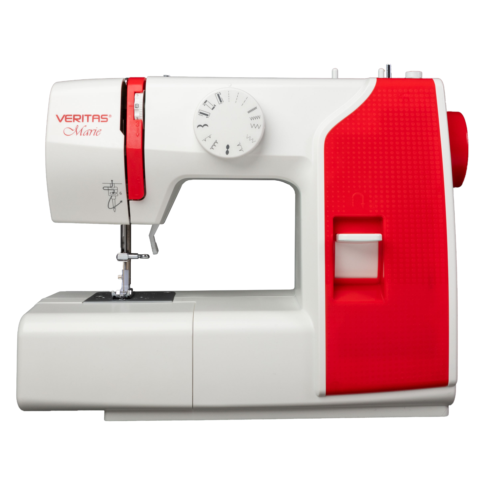 Die VERITAS Marie garantiert den perfekten Näheinstieg.Die VERITAS Marie ist die ideale Wahl für Anfänger und Fortgeschrittene, die sich eine Nähmaschine für einfache Reparatur- und Näharbeiten wünschen. Dabei bietet sie die wichtigsten Grundfunktionen, Nutz-, Overlock- und Zierstiche ohne viel Schnickschnack. Zugleich ist sie so einfach in der Bedienung, dass man mit der VERITAS Marie wirklich nichts falsch machen kann.Es fehlt an nichtsErste Nähversuche und einfache Reparaturarbeiten können mit 13 Stichprogrammen problemlos bewältigt werden. Mit dem Gerad-, Zickzack- und Blindstich können Vorhänge und Hosen gekürzt, Risse gestopft und Flicken aufgenäht werden. Mit dem 4-Stufen-Knopflochprogramm werden akkurate Knopflöcher genäht, die jedes gelungene Nähergebnis abrunden.Kinderleichte BedienungFür stabile Strapaziernähte bietet die VERITAS Marie drei vor eingestellte Stichlängen beim Geradstich, welche ganz einfach über das Drehrad ausgewählt werden können. Für das Versäubern von Schnittkanten stehen drei verschiedene Stichlängen des Zickzackstichs zur Verfügung. Für stabilere Nähte wird der Stich am Ende der Naht durch Betätigen der Rückwärtsnähtaste gefestigt.Klein und praktischTrotz ihres kleinen Formats überzeugt die VERITAS Marie auf ganzer Linie. Durch das Entfernen des Freiarmfachs entsteht zusätzlicher Platz zum Nähen und dank des ausklappbaren Tragegriffs ist sie einfach zu transportieren. So kann die Nähmaschine bis zu ihrem nächsten Einsatz schnell sicher und geschützt verstaut werden.Lieferumfang: