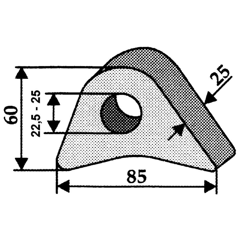 Bohrung für Bolzen / Welle mit ca. 22 mm Durchmesser.