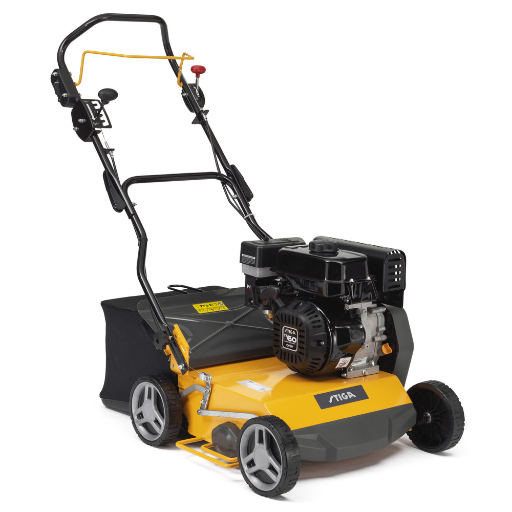- 40 cm Arbeitsbreite für schnelles und effizientes Vertikutieren und Belüften des Bodens. Angetrieben durch einen 182 cm³ starken Viertakt-Motor