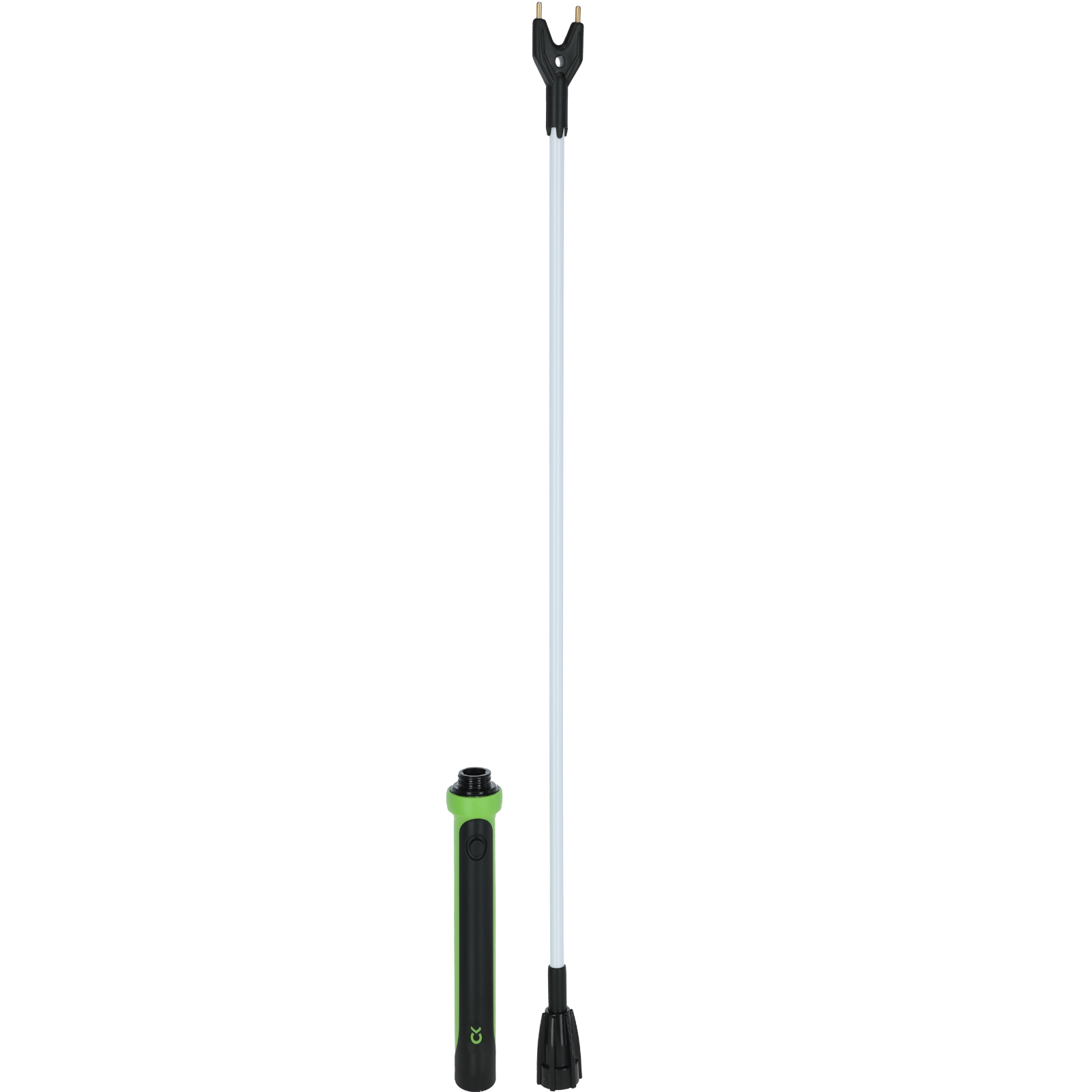 Zuverlässiger elektrischer Viehtreiber mit Schnelllade-Akku. Das vollvergossesne, robuste Kunststoffgehäuse schützt die Elektronik vor Schmutz und Wasser. Die Abschaltautomatik (1 Sek.) und Kontrollfunktion sorgen für eine sichere Anwendung für Mensch und Tier. Max. Spannung 6.000 Volt. Länge 93 cm.