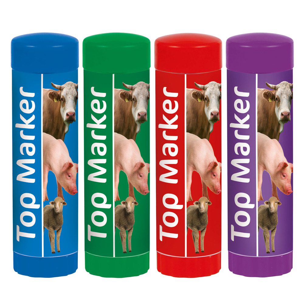 Zur Kurzzeitmarkierung von Schweinen, Schafen und Rindern. Farben mit hoher Deckkraft, ergiebig und preiswert, einfach in der Anwendung durch Drehstift, Inhalt ca. 60ml