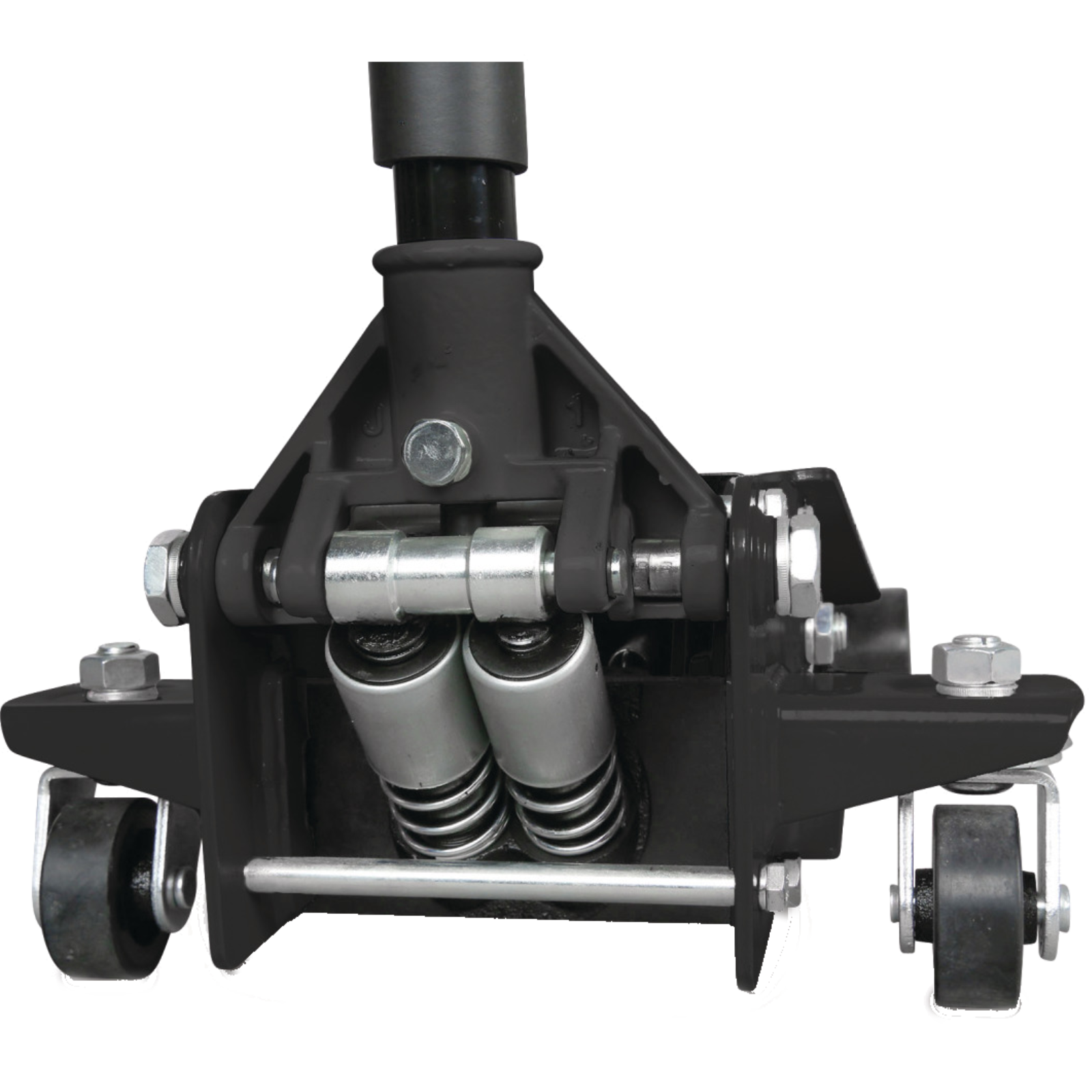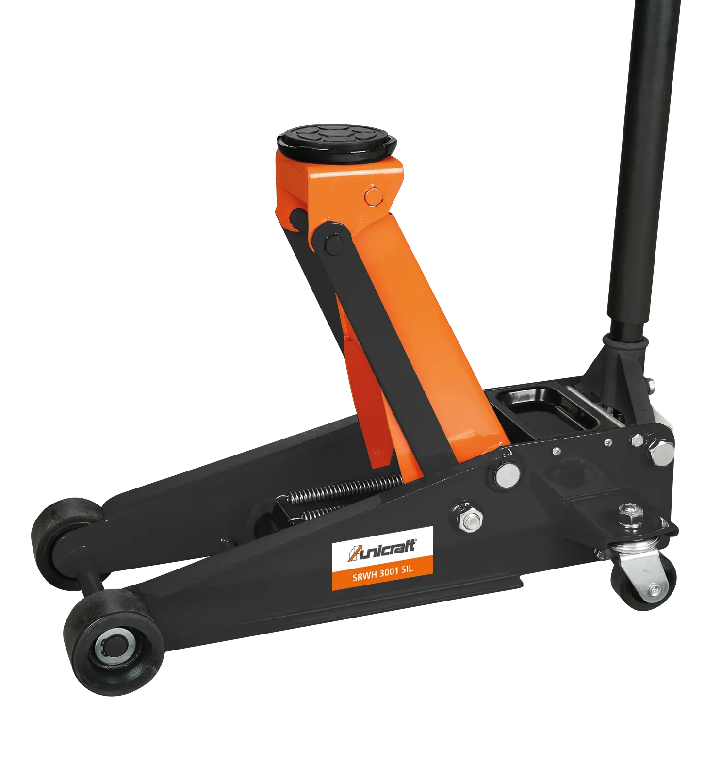 Sicheres und leichtes Anheben der Last dank zweiteiligem Pumphebel mit Gummigriff.Durch Rollen aus Polyurethan wesentlich leiser und bodenschonender als Heber mit Stahlrollen.