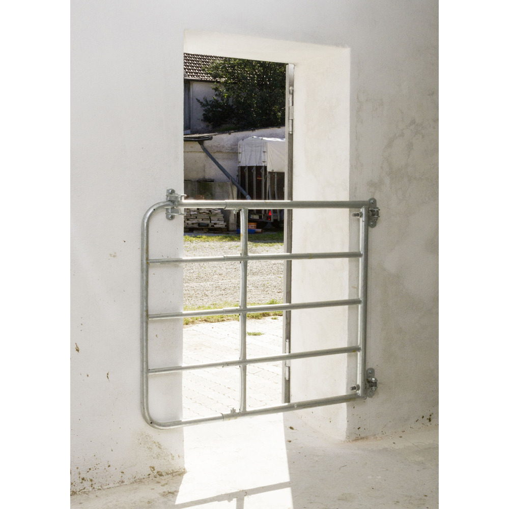 Verstellbares Weidezauntor mit einerHöhe von 110 cm. Stabile, verzinkte Stahlrohre, inkl. Montageset bestehend aus 2 Scharniere, 1 Schließoption, 6 Holzschrauben (12 x 80 mm).
