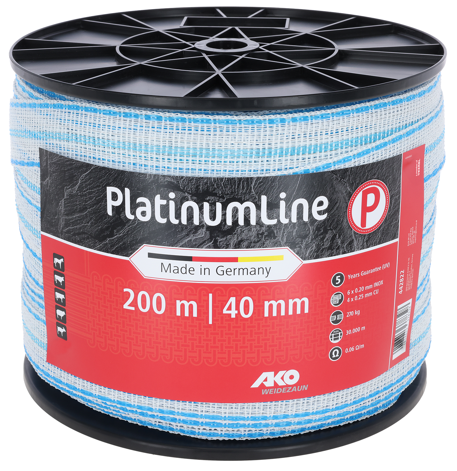 Produktinformationen "Weidezaunband Platinum weiß/blau 40 mm / 200 m"