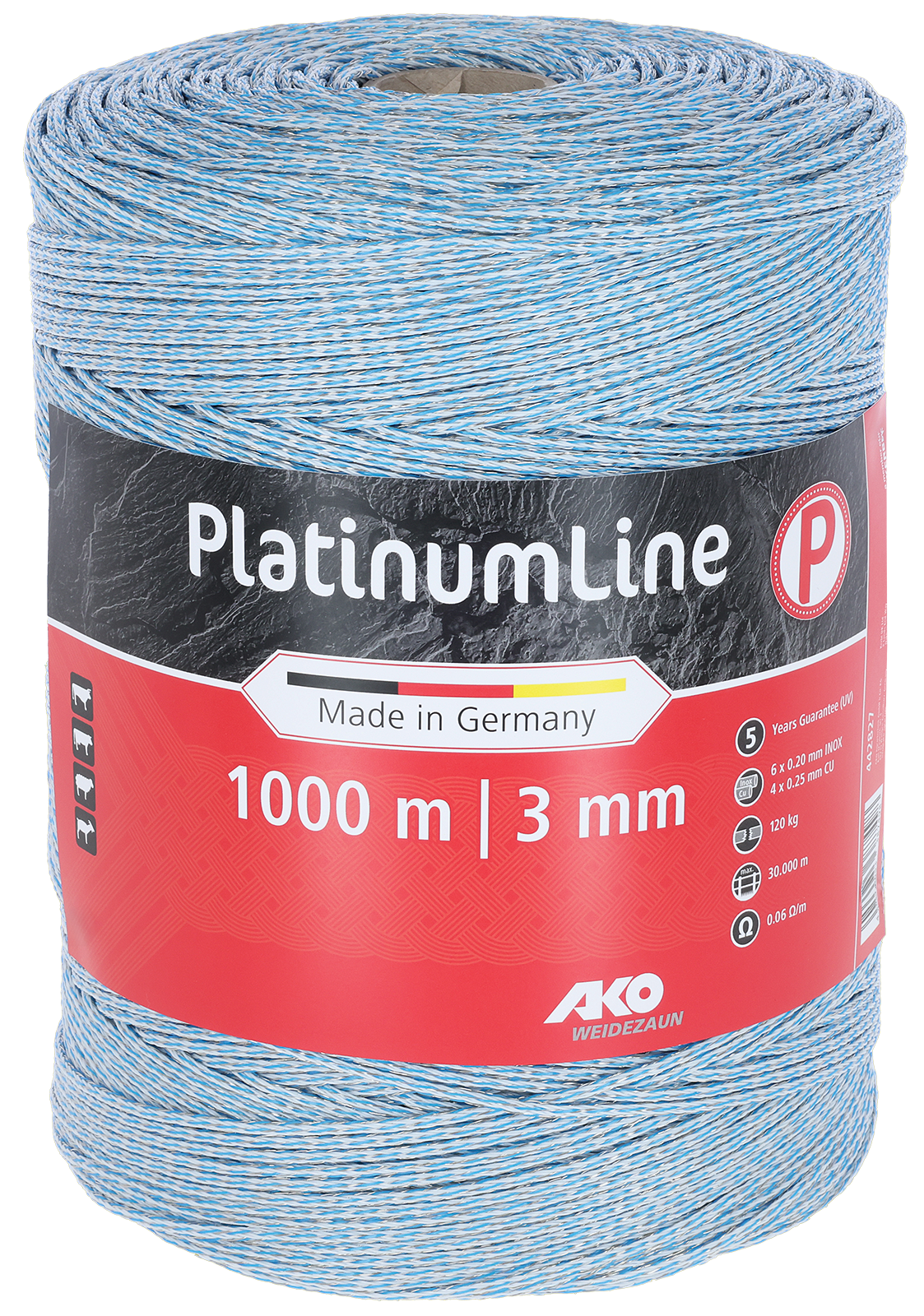 Produktinformationen "Weidezaunlitze Platinum weiß/blau 3 mm / 1000 m"