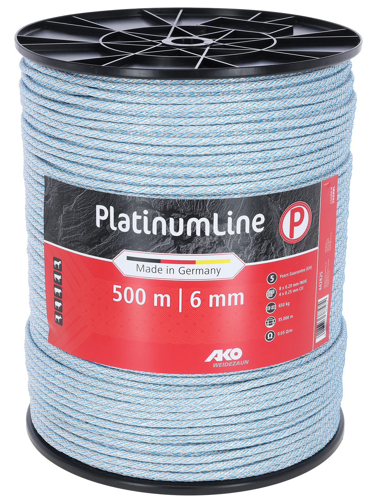 Produktinformationen "Weidezaunseil Platinum weiß/blau 6 mm / 500 m"