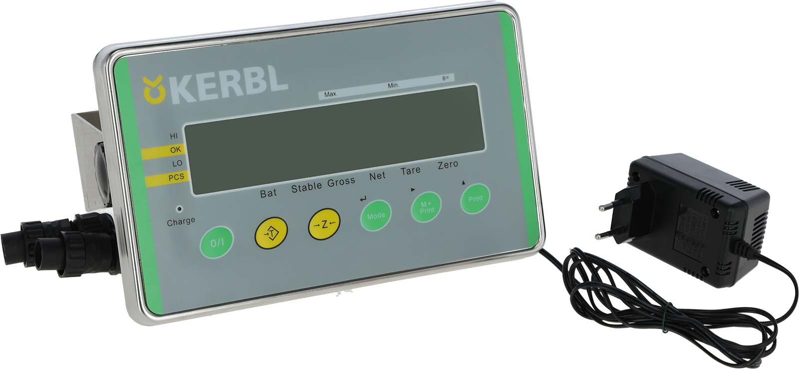 • Anzeigeeinheit mit großem, beleuchteten LCD-Display, Haltewinkel und 4,5 m langem Signalkabel