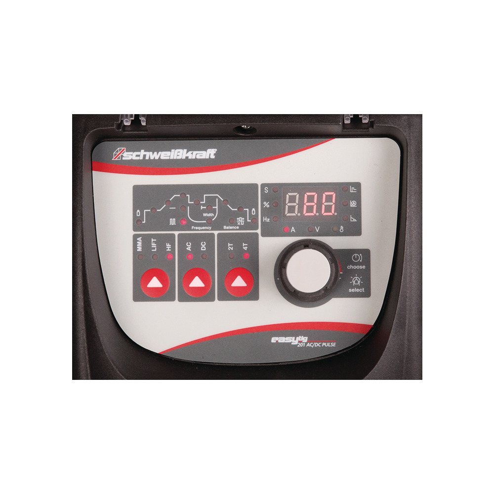 Für Werkstatt und mobilen Einsatz -Das Schweißkraft WIG-Inverter Easy TIG 201 AC/DC ist ein hochmodernes Schweißgerät, das sich ideal für Werkstätten und mobile Anwendungen eignet.Mit seinem 230V Anschluss ist es besonders praktisch für Montagearbeiten. Das digitale Display ermöglicht präzise Einstellungen der Schweißparameter.Dieses Gerät bietet vielfältige Funktionen wie WIG DC für einfaches WIG-Schweißen, WIG-Pulsen für reduzierte Wärmeeinbringung und HF-Hochfrequenz-Zündung ohne Werkstückberührung. Die leiseKühlung gewährleistet hohe Einschaltdauer und effiziente Wärmeableitung. Mit etwa 9 kg ist es leicht und mobil.Das Schweißkraft WIG-Inverter Easy TIG 201 AC/DC eignet sich für Betriebswerkstätten, Metallbau, Baustellen und Landwirtschaft. Es ist ein leistungsstarkes, vielseitiges Gerät für präzises und effizientes Schweißen in verschiedenen Anwendungen.Zusammenfassung:Alle Geräte sind in moderner Inverter-Technologie.