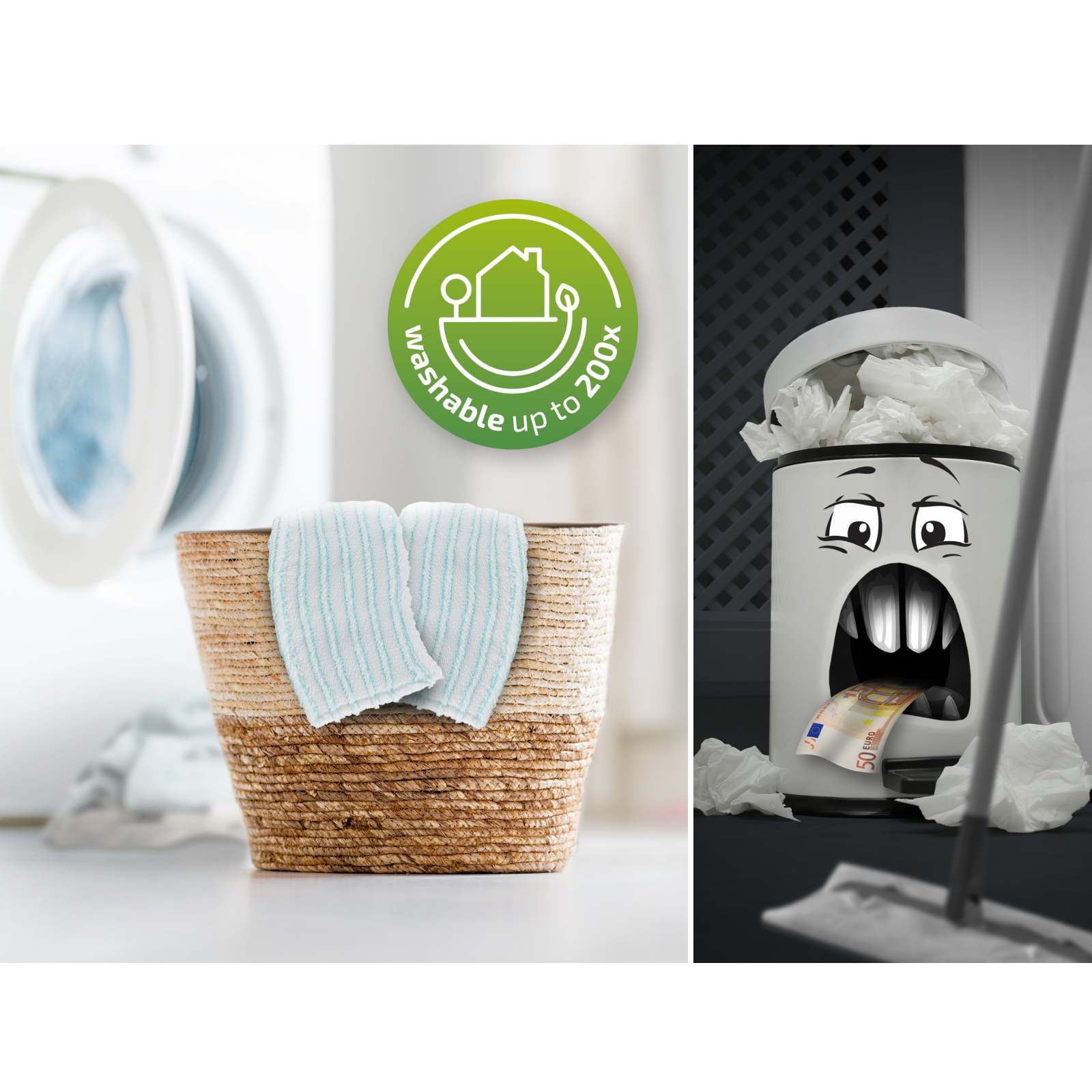 • Langlebiger und nachhaltiger Wischbezug: micro duo bei 60 °C bis zu 200x in der Waschmaschine waschbar
