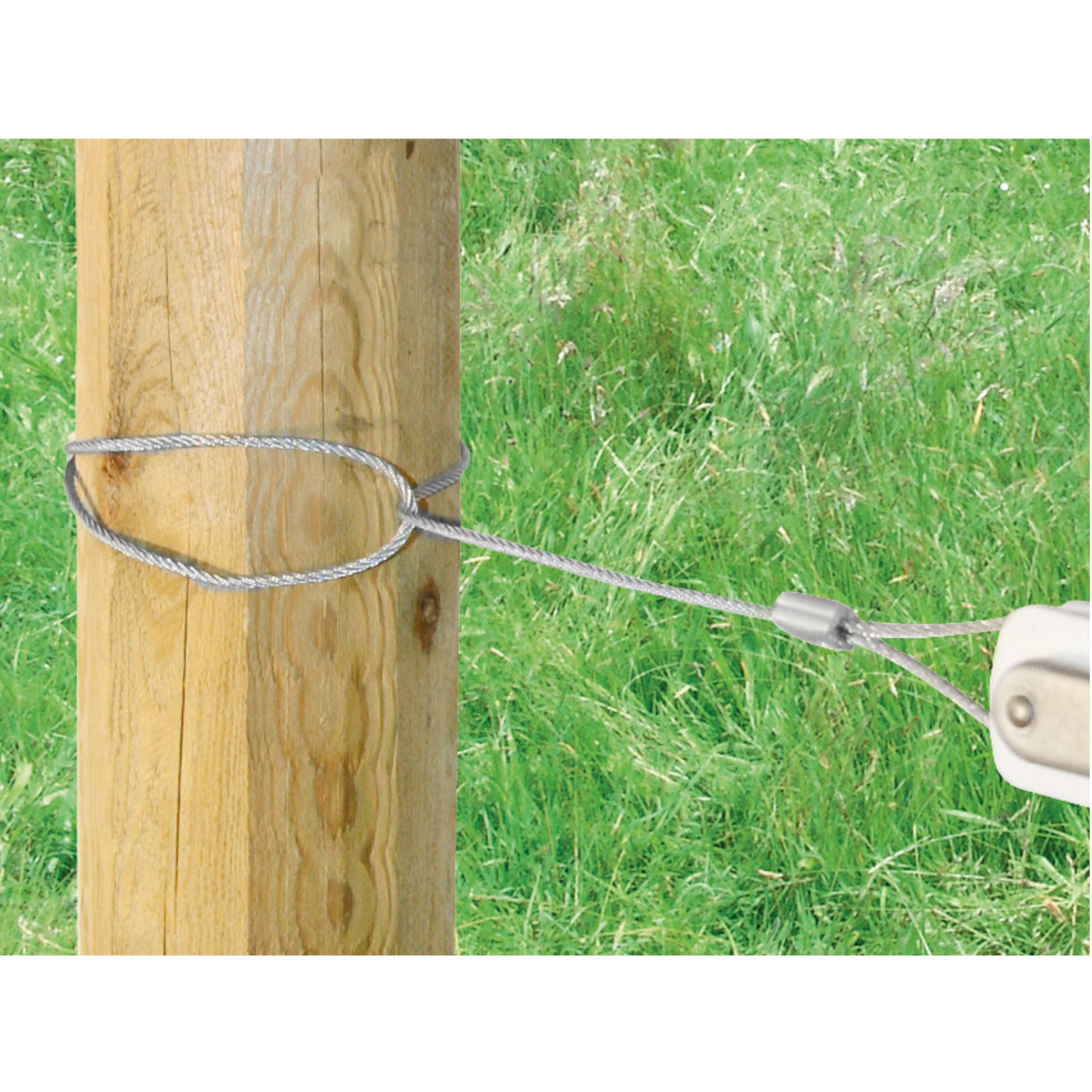 Zum schnelle Spannen/Entspannen von Draht, Seil oder Litze.Mit Zahnradsperre.​ Mit integriertem Isolator und Drahtseil.