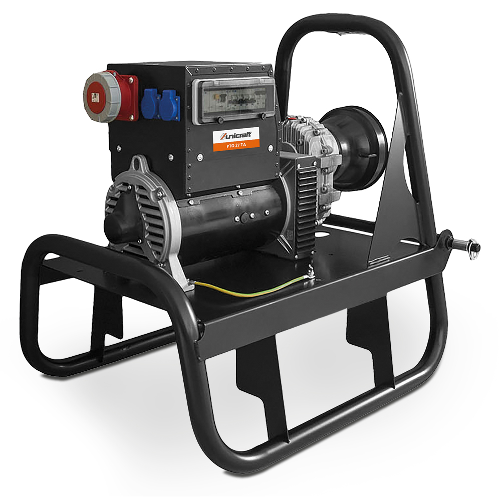 Das Zapfwellen-Notstromaggregat PTO 27 TA ist ein zuverlässiges und robustes Notstromaggregat, das speziell für den Einsatz in der Landwirtschaft und bei Stromausfällen entwickelt wurde.Mit gut erreichbaren Anschlüssen an der Oberseite und einem Bedienpanel inklusive Betriebsstundenzähler, Voltmeter und Frequenzmeter bietet es eine bequeme Handhabung und Überwachung. Der robuste Aufbau mit Schutzart IP23 schützt vor äußeren Einflüssen, während die elektronische Spannungsregelung (AVR) eine stabile Stromversorgung gewährleistet.Ein Thermoschutzschalter schützt vor Überlastung und Kurzschluss. Mit Nennspannungen von 230/400V, einer Dauerausgangsleistung von 11,9/29,7 kVA und Steckdosen für vielseitige Nutzung ist es empfohlen für Traktoren mit 45 kW Leistung. Bei einem Gewicht von 139 kg ist das PTO 27 TA trotz seiner Leistung mobil und eine praktische Lösung für zuverlässige Stromversorgung in der Landwirtschaft und anderen Bereichen, die Notstrom benötigen.Zusammenfassung: