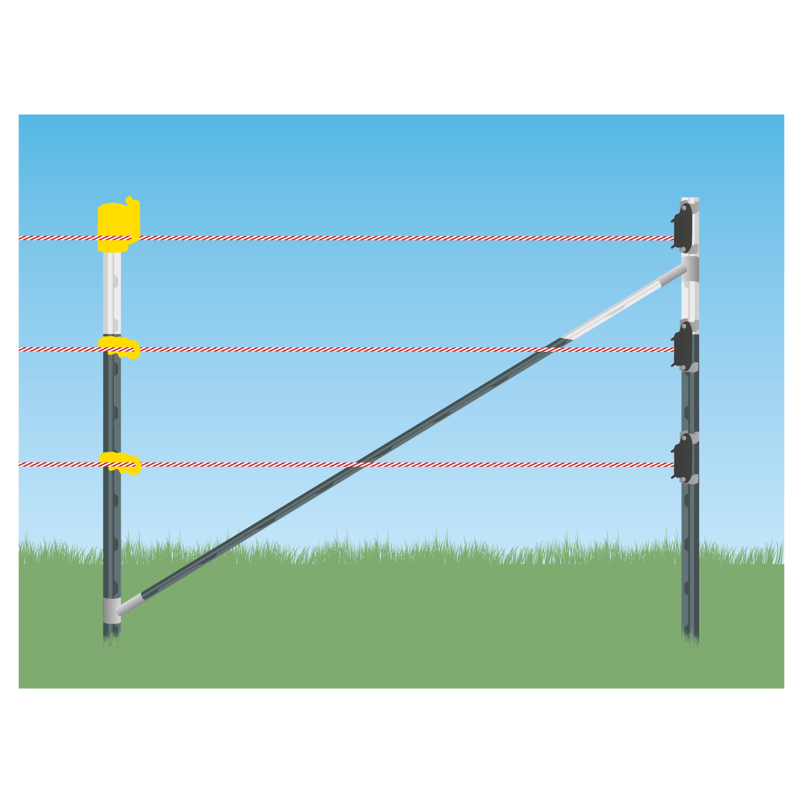 • Installieren Sie das Zaunanfangs-Set am Tor- bzw. Abzweigpfahl und dem Streckenpfahl...