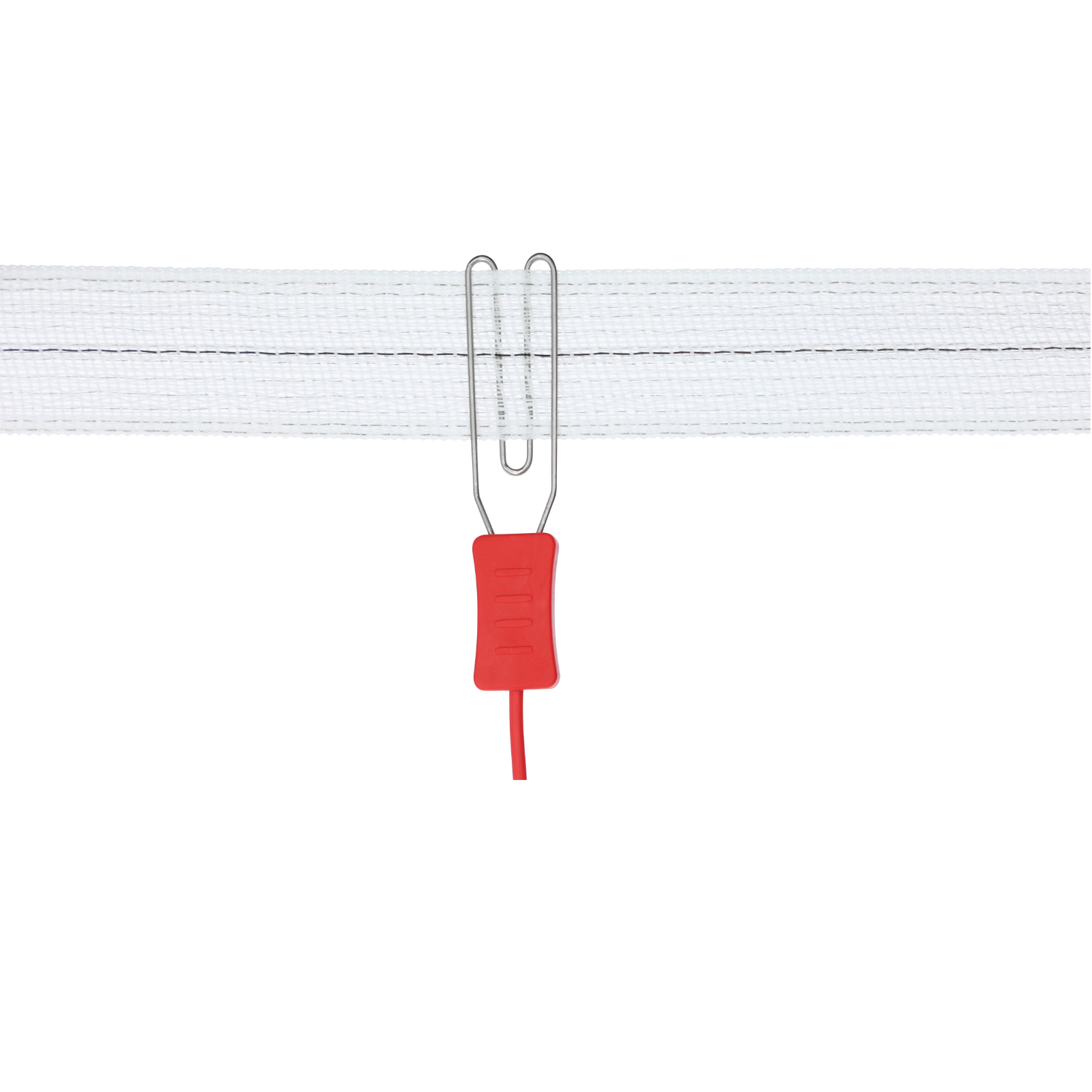 Verbindet das Weidezaungerät mit dem Weidezaundraht oder der Weidezaunlitze. Kabellänge 125 cm. Herzanschlussklemme. Öse M8. Anschlussteile aus Edelstahl.