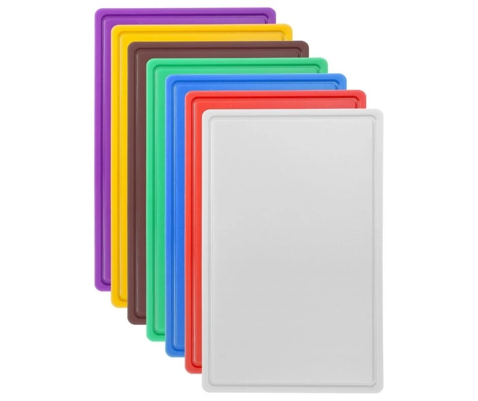 Die Hygiene-Anforderungen in der Gastronomie, Direktvermarktung aber auch privaten Küche steigen. Die HACCP-Norm (Hazard Analysis Critical Control Points) empfiehlt deshalb für verschiedene Lebensmittel jeweils Schneidbretter in unterschiedlichen Farben.