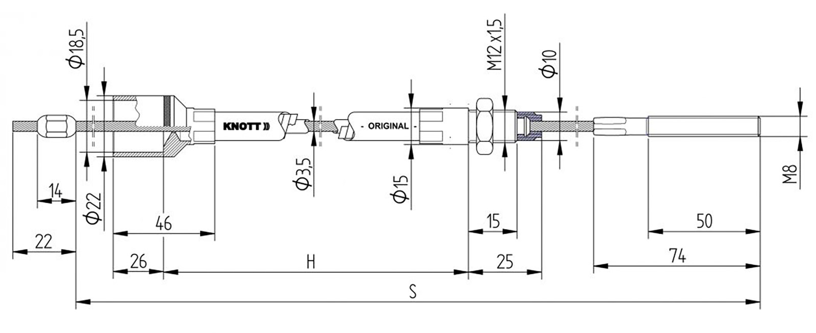 Produktinformationen "Bremsseil KNOTT 1230/1440mm M8 "