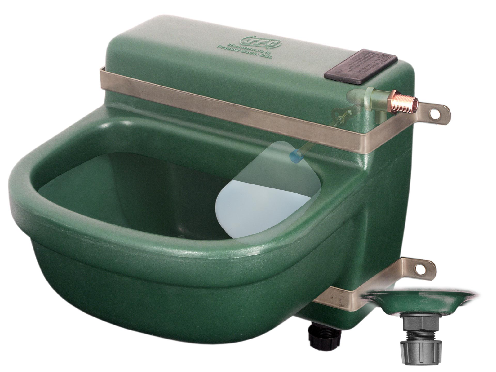 En polyéthylène robuste et résistant aux chocs, surface lisse et design bombé spécialement conçu pour la sécurité des animaux. L'abreuvoir est équipé d'un boîtier de valve surélevé et d'une valve à flotteur en PVA avec un raccord ½" (filetage extérieur) en laiton, qui peut fournir 30 l/min à une pression de 3 bars. Son grand volume en fait l'abreuvoir idéal pour les animaux de grande taille ou les groupes de petits animaux. Le système d'évacuation intégré permet un nettoyage rapide et facile.