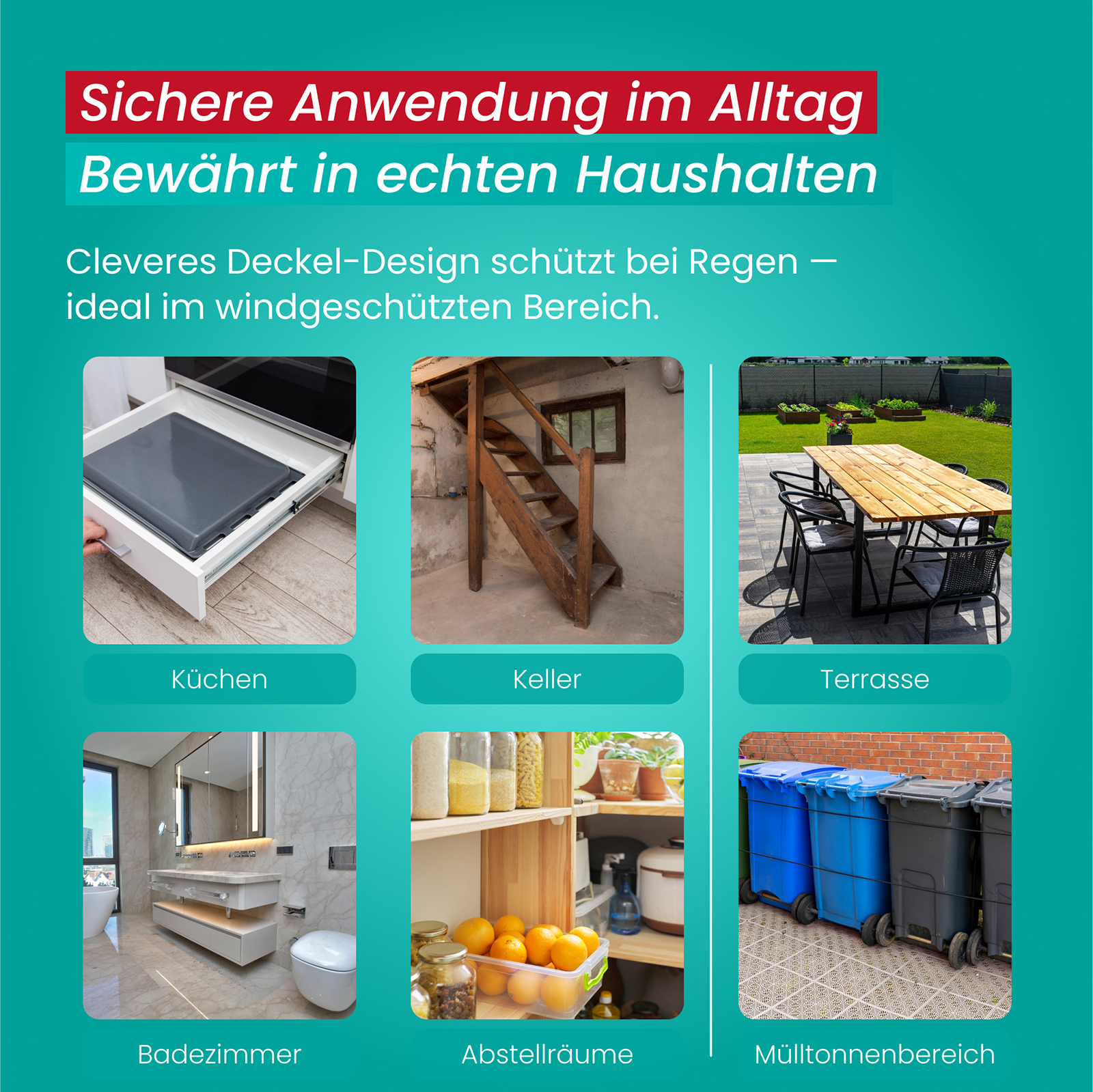 Idéal pour une utilisation dans les cuisines, les réserves, les terrasses, etc.