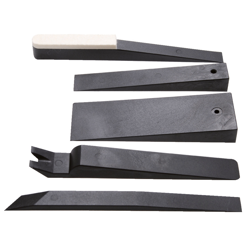 La gamme de cales de montage en cinq pièces, fabriquées à partir d'un mélange plastique dur/nylon, est particulièrement adaptée aux travaux sur l'habillage, la planche de bord et les baguettes d'habillage.